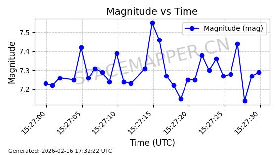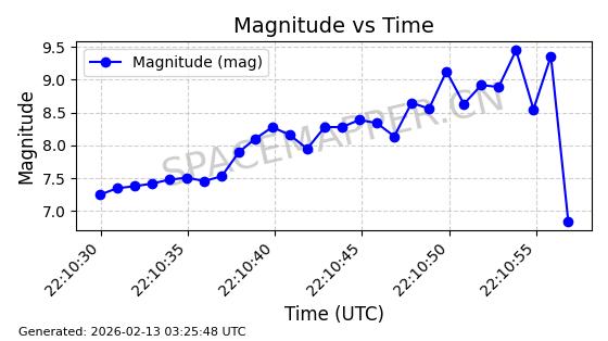 | STARLINK-31447 | 59302 | 59302 | 2024-03-24 同日期轨道 2024-056G 同批次轨道 | 在轨 | 94分钟 | 43.0053 | 482.247 | 483.859 | 0.0001174 | 2026-02-18 04:49:10 | ||