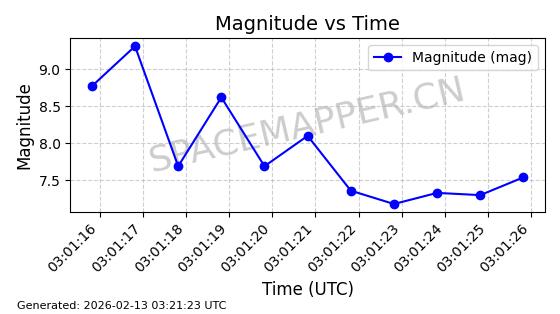 | STARLINK-31578 | 59321 | 59321 | 2024-03-25 同日期轨道 2024-057B 同批次轨道 | 在轨 | 94分钟 | 43.0028 | 482.583 | 483.533 | 0.0000692 | 2026-02-18 00:07:02 | ||