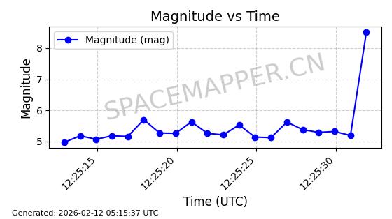 | STARLINK-31570 | 59324 | 59324 | 2024-03-25 同日期轨道 2024-057E 同批次轨道 | 在轨 | 94分钟 | 43.0010 | 482.524 | 483.57 | 0.0000762 | 2026-02-18 01:37:42 | ||
