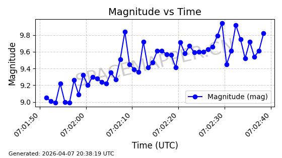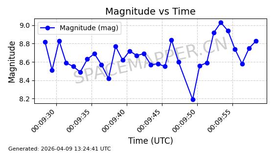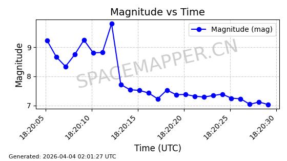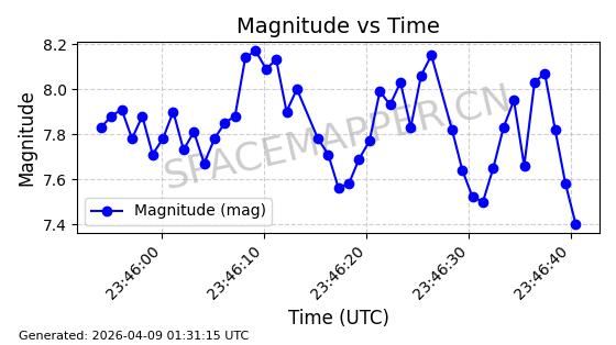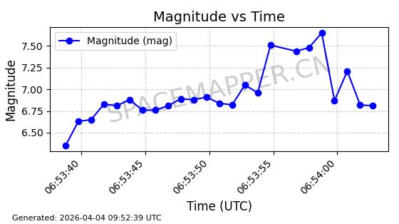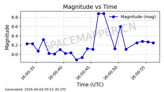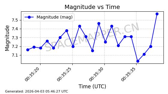 | 卫星名称 | AOE ID | NORAD ID | 发射日期 国际编号 | 在轨状态 | 轨道周期 | 轨道倾角 (度) | 近地点 (Km) | 远地点 (Km) | 偏心率 | 更新时间 (UTC) | 近期光变曲线 | 服务 |