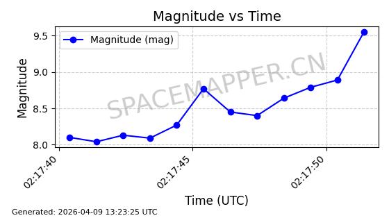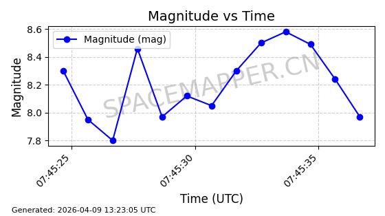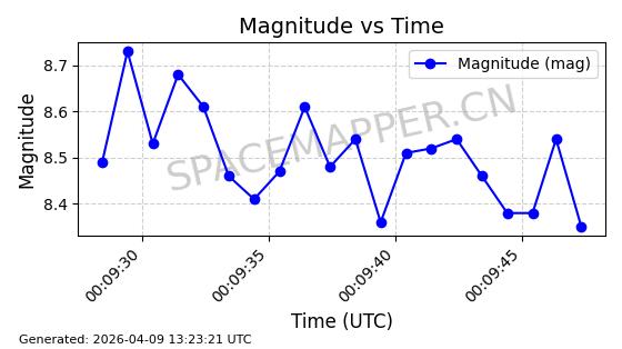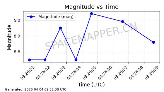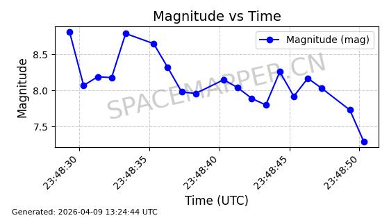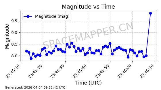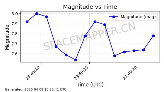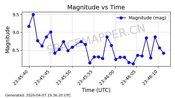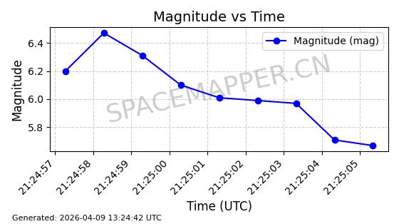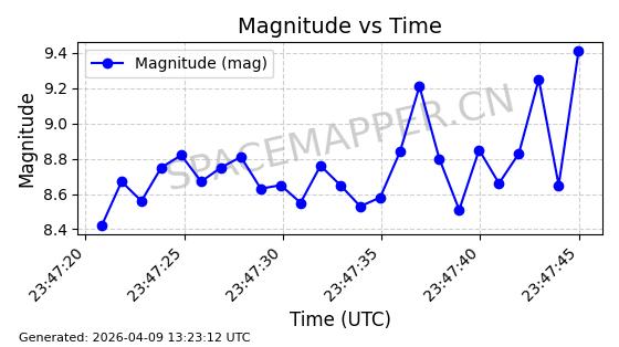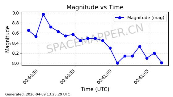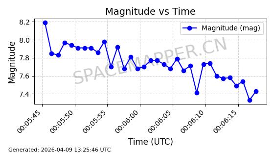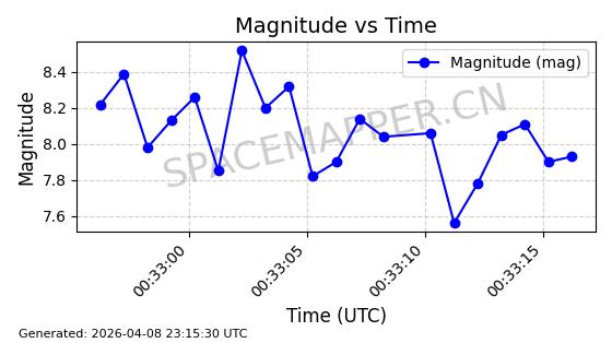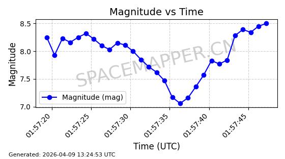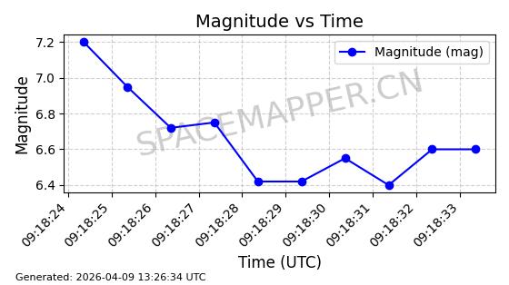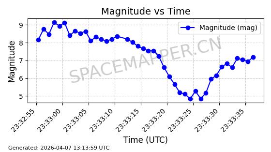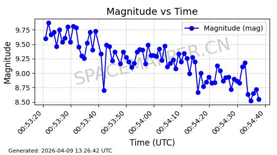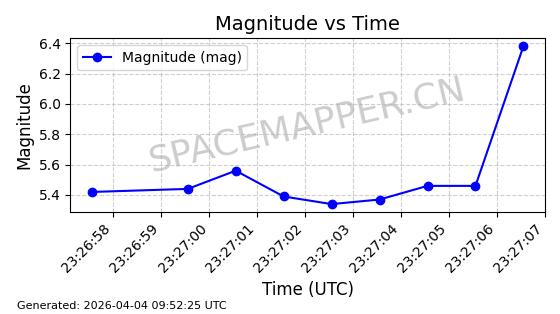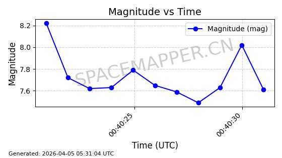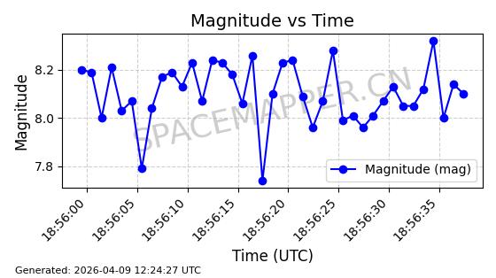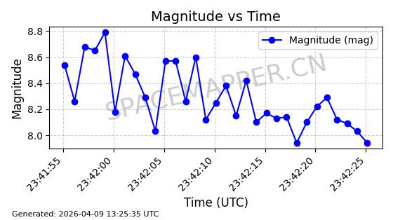 | STARLINK-5644 | 55369 | 55369 | 2023-01-26 同日期轨道 2023-013AQ 同批次轨道 | 在轨 | 95分钟 | 42.9997 | 531.89 | 533.99 | 0.0001518 | 2026-04-08 04:45:10 | ||