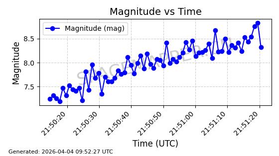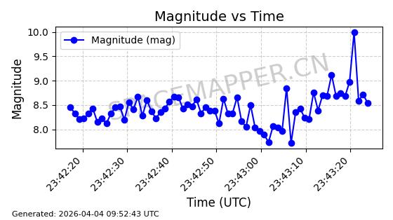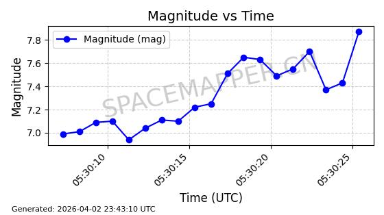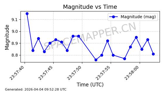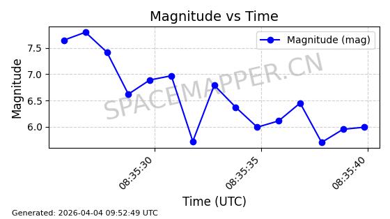 | STARLINK-5677 | 55463 | 55463 | 2023-02-02 同日期轨道 2023-015Q 同批次轨道 | 在轨 | 95分钟 | 42.9981 | 520.26 | 521.68 | 0.0001028 | 2026-04-08 05:36:10 | ||