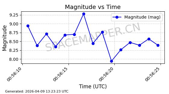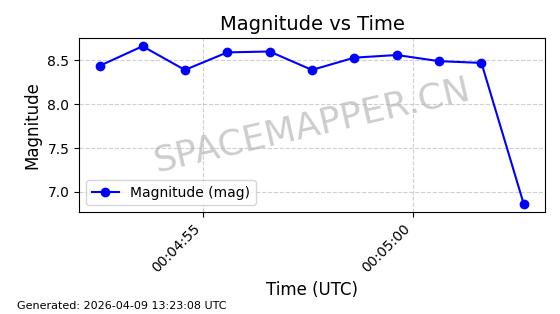 | STARLINK-5675 | 55340 | 55340 | 2023-01-26 同日期轨道 2023-013K 同批次轨道 | 在轨 | 94分钟 | 43.0009 | 487.253 | 488.869 | 0.0001176 | 2026-04-08 03:13:24 | ||
