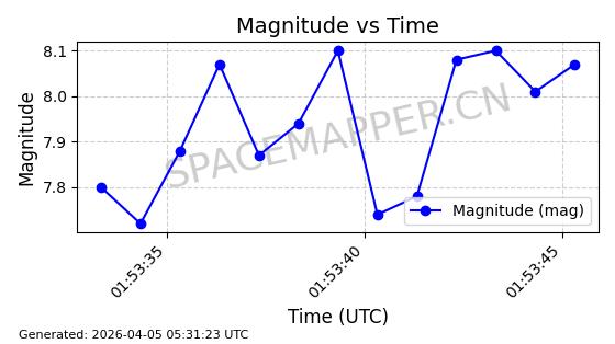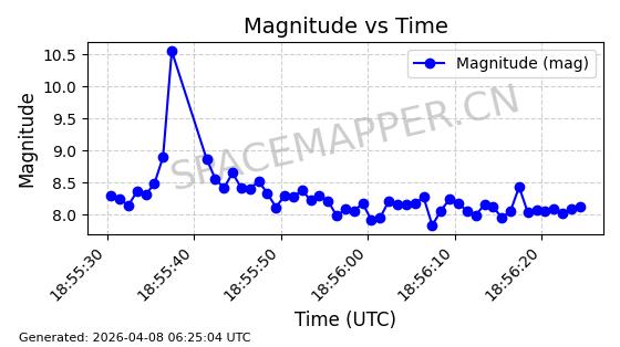 | STARLINK-5689 | 55474 | 55474 | 2023-02-02 同日期轨道 2023-015AB 同批次轨道 | 在轨 | 94分钟 | 43.0092 | 481.989 | 486.041 | 0.0002952 | 2026-04-08 06:13:02 | ||