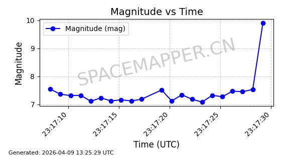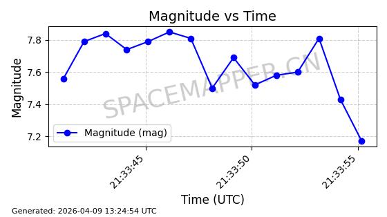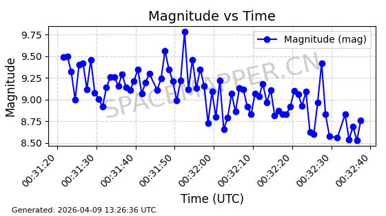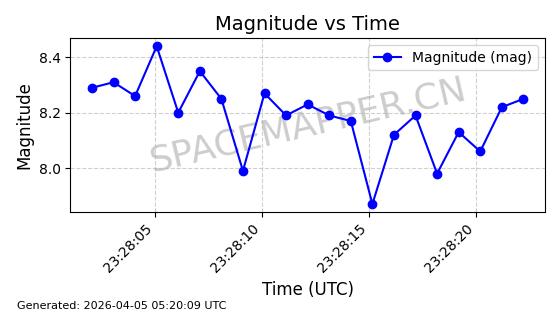 | STARLINK-5709 | 55621 | 55621 | 2023-02-12 同日期轨道 2023-020BE 同批次轨道 | 在轨 | 94分钟 | 43.0040 | 484.329 | 486.801 | 0.0001800 | 2026-04-08 07:18:18 | ||