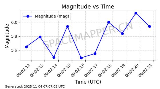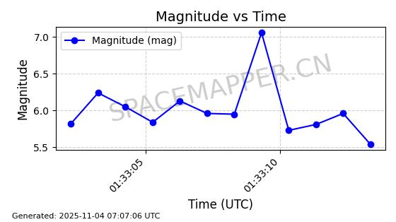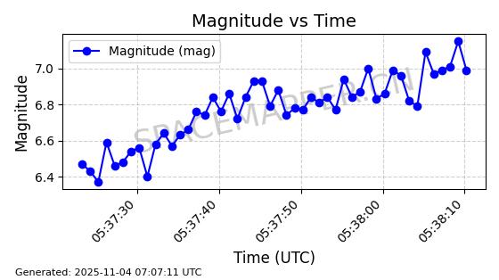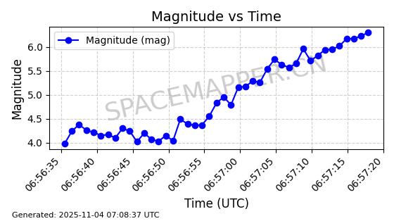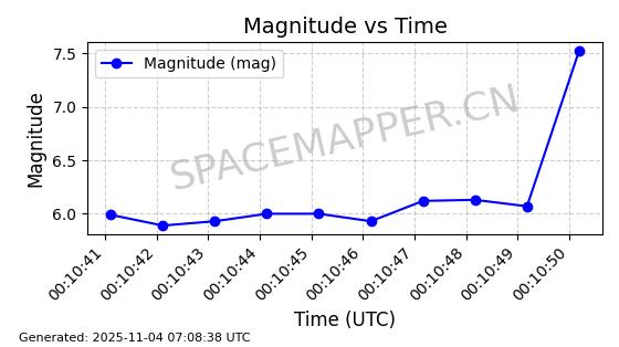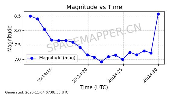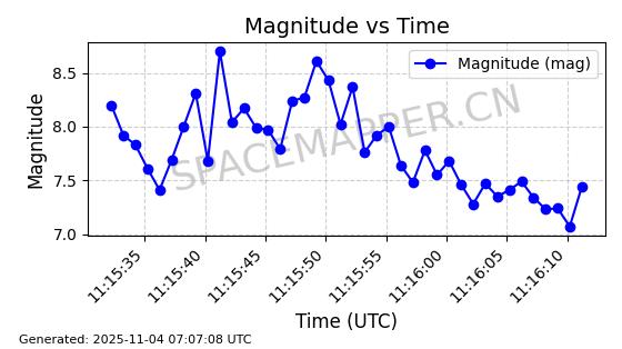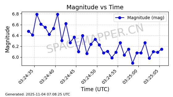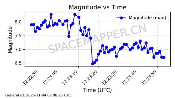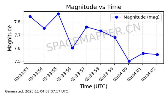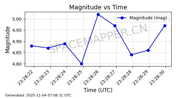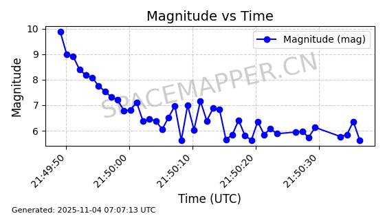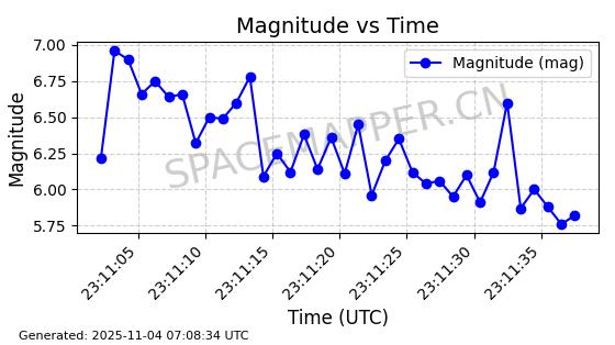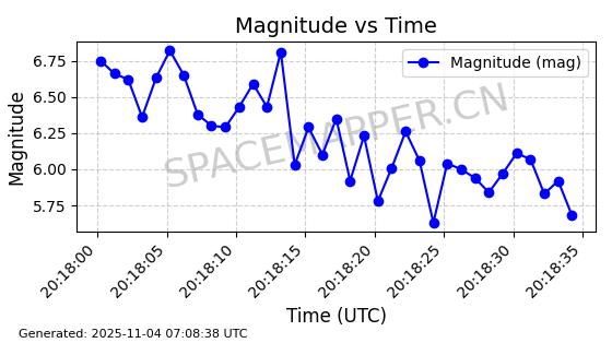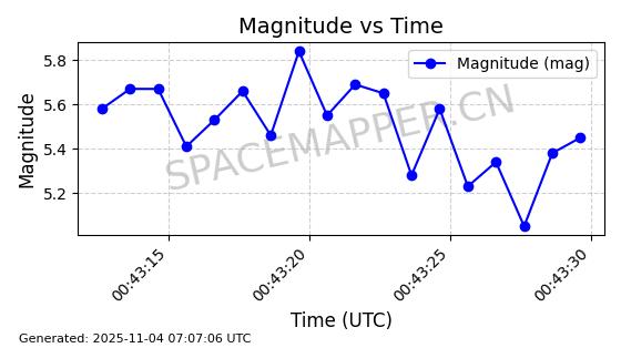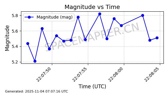 | STARLINK-5914 | 55941 | 55941 | 2023-03-17 同日期轨道 2023-037AD 同批次轨道  |  在轨 | 96分钟 | 69.9999 | 570.213 | 573.909 | 0.0002658 | 2025-11-02  05:24:23  |  ||