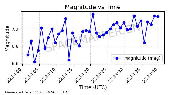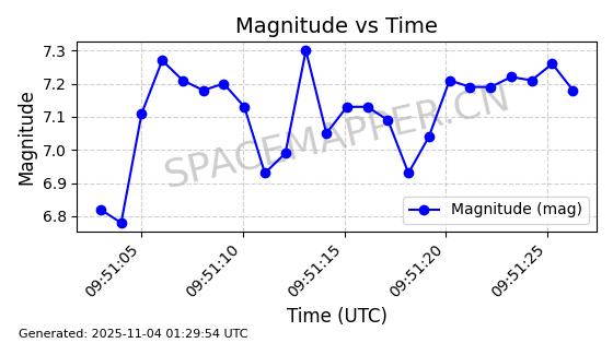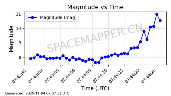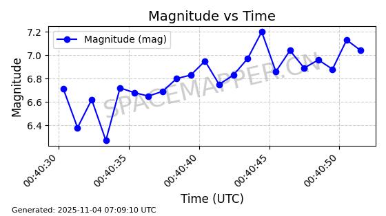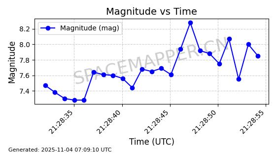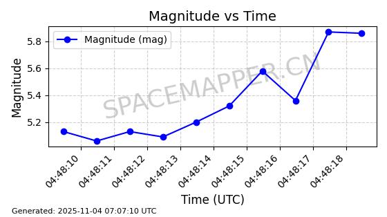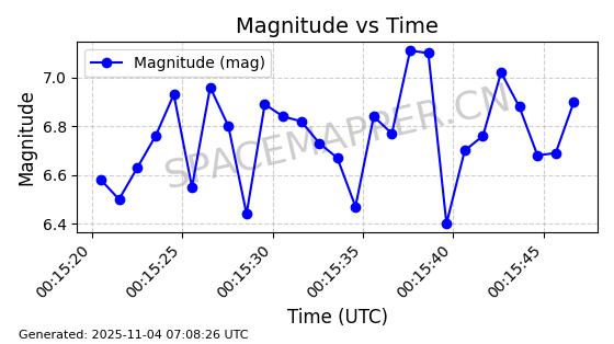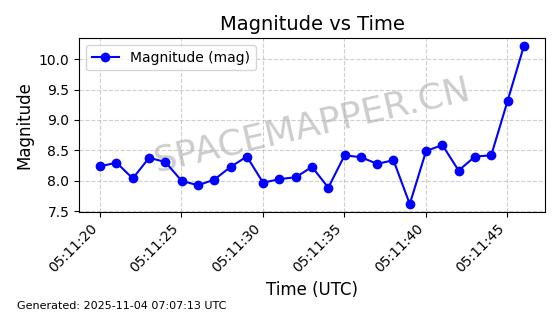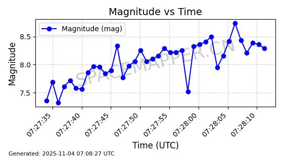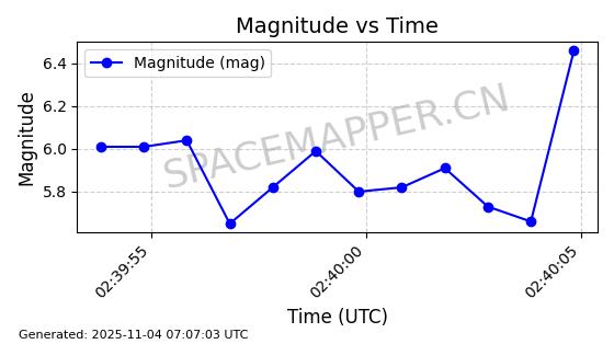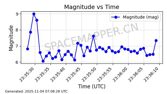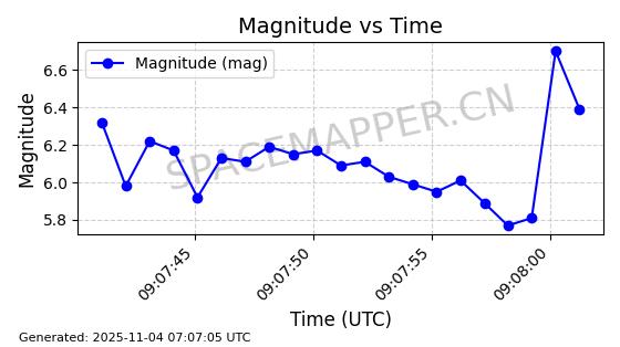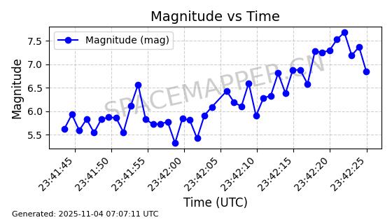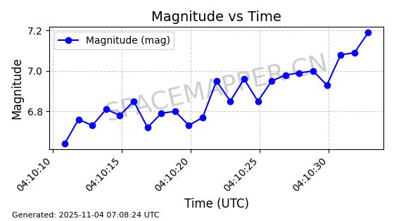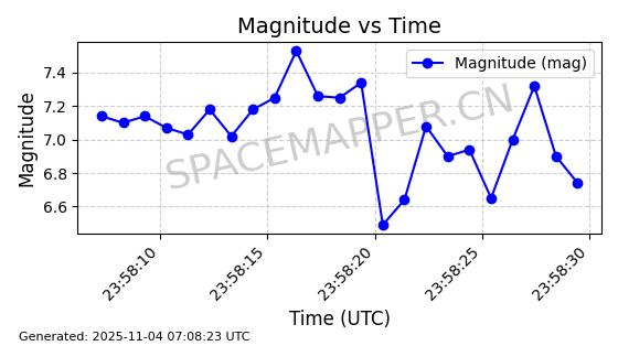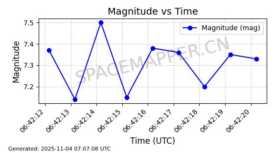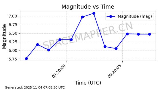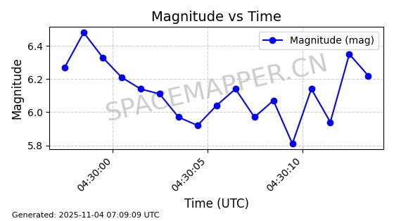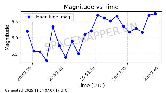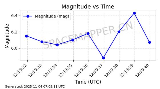 | STARLINK-5920 | 55935 | 55935 | 2023-03-17 同日期轨道 2023-037X 同批次轨道  |  在轨 | 96分钟 | 69.9992 | 570.005 | 574.093 | 0.0002940 | 2025-11-02  05:06:21  |  ||