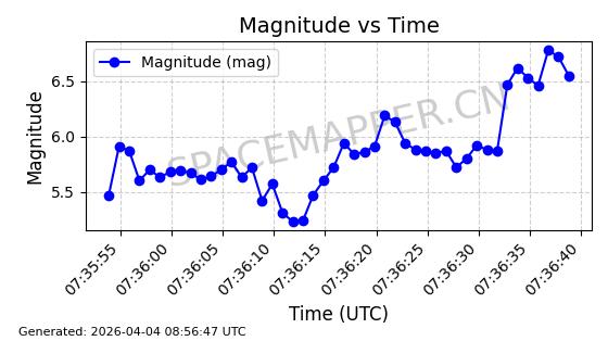 在轨 96分钟 70.0001 569.855 574.255 0.0003165 2026-04-08