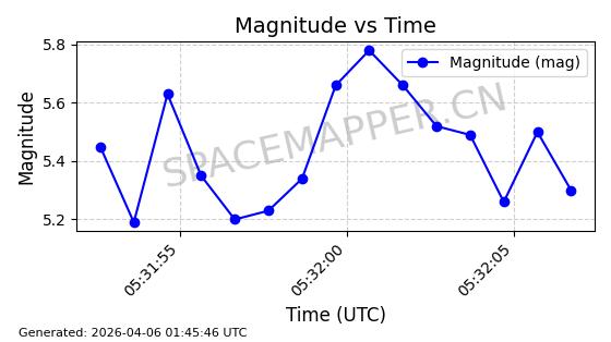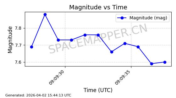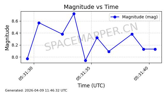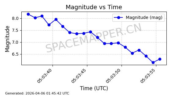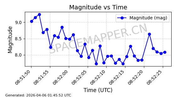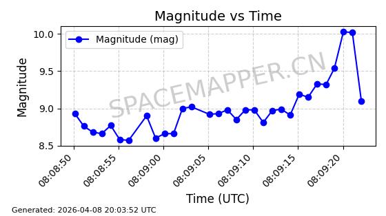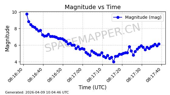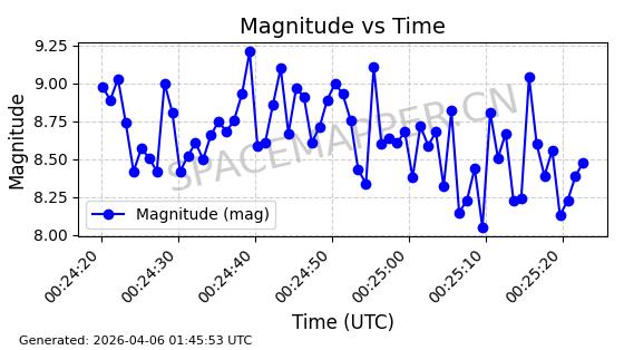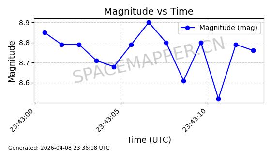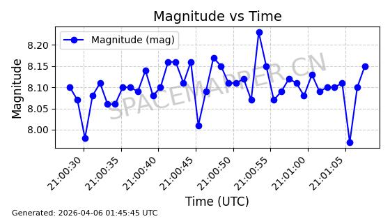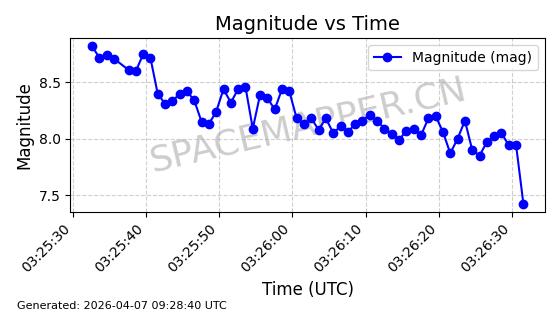 在轨 94分钟 43.0038 482.091 484.015 0.0001402 2026-04-08