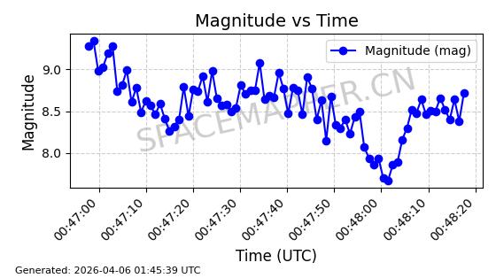在轨 94分钟 43.0008 484.607 486.499 0.0001377 2026-04-08