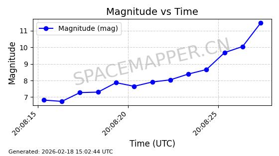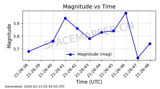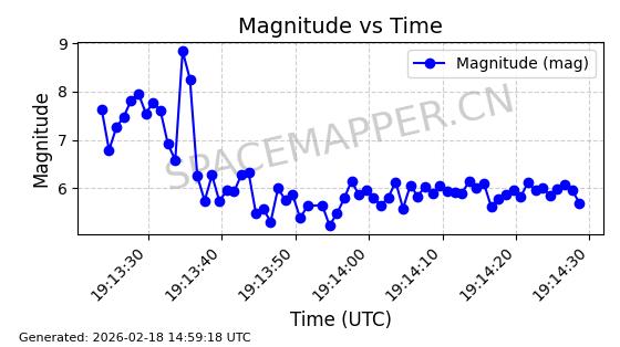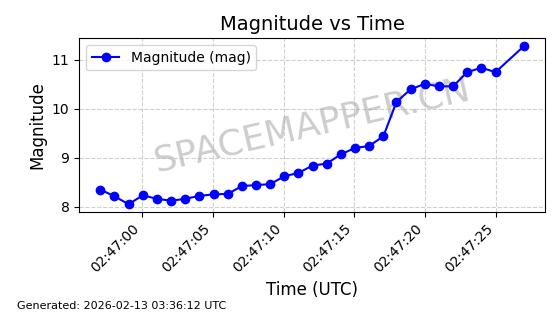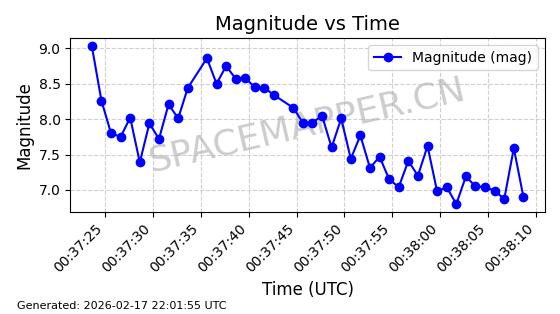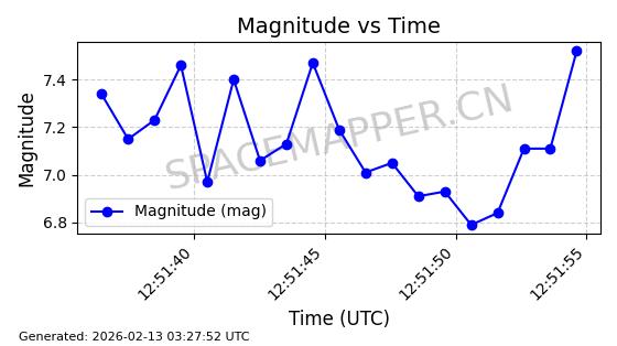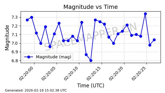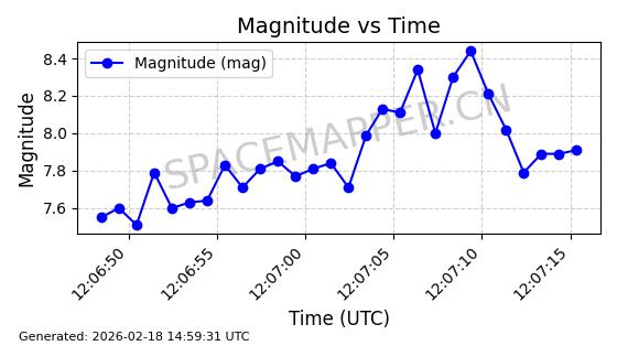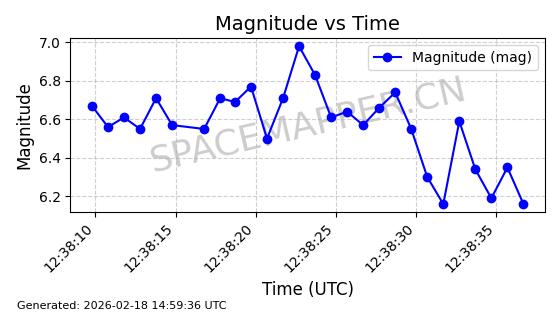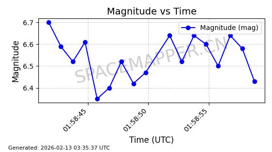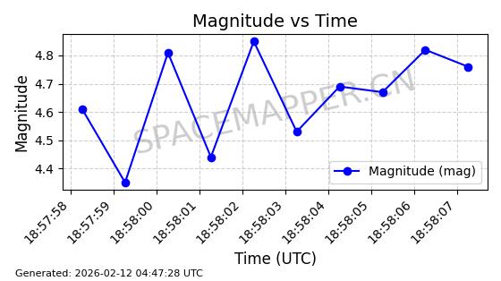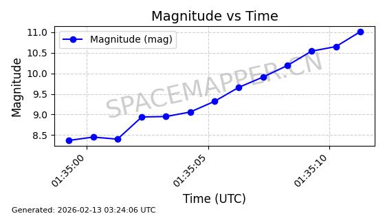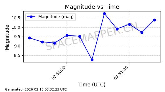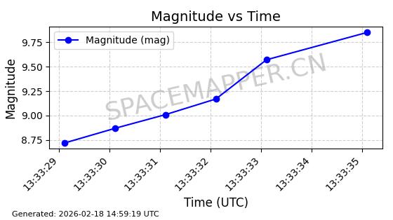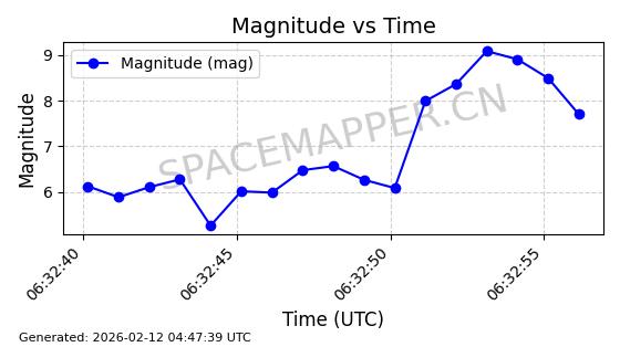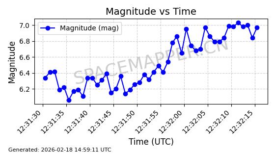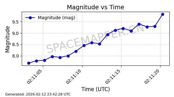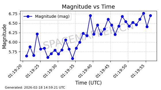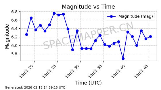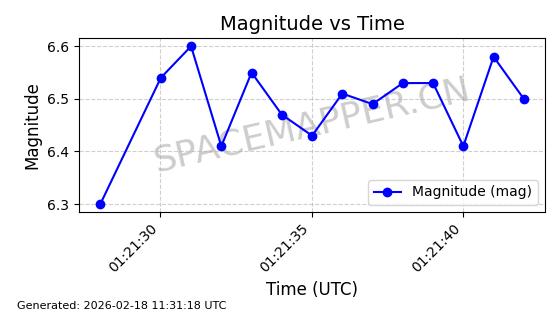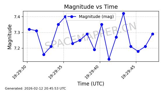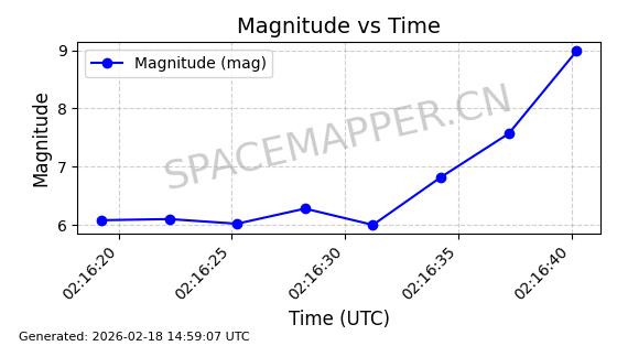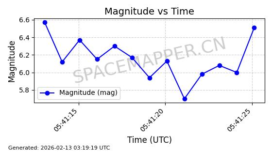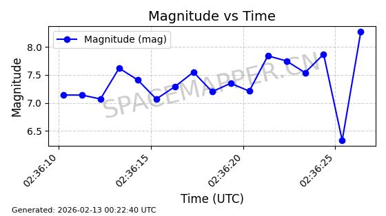 | STARLINK-11094 | 59714 | 59714 | 2024-05-10 同日期轨道 2024-088G 同批次轨道 | 在轨 | 92分钟 | 53.1567 | 359.211 | 360.223 | 0.0000750 | 2026-02-17 01:43:22 | ||