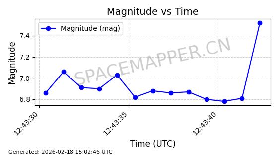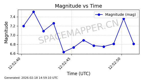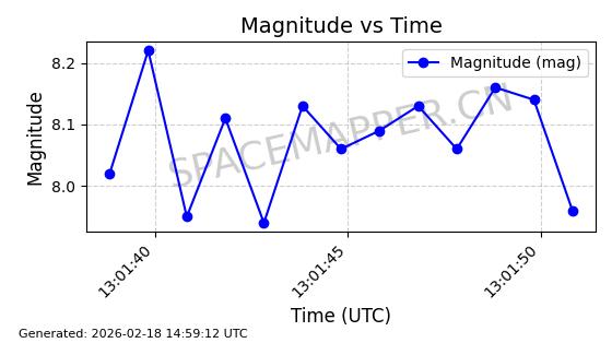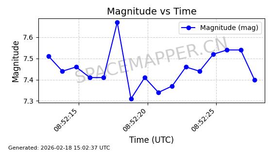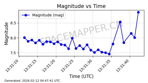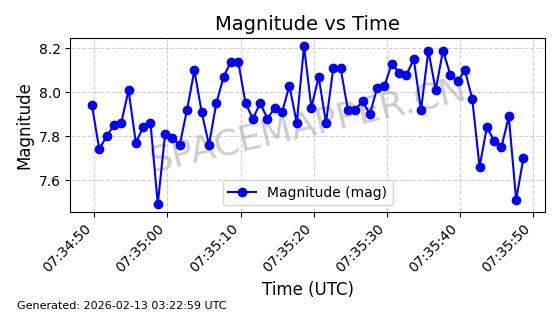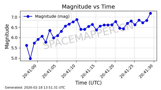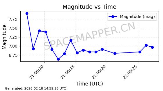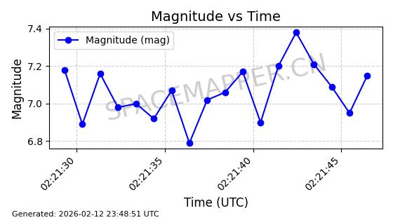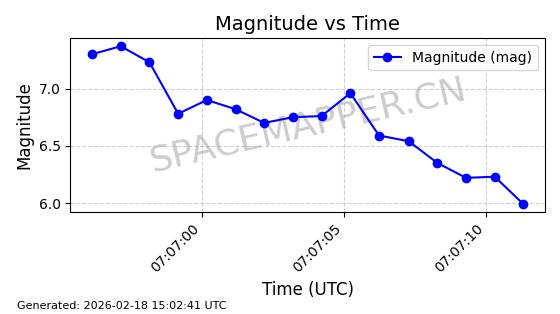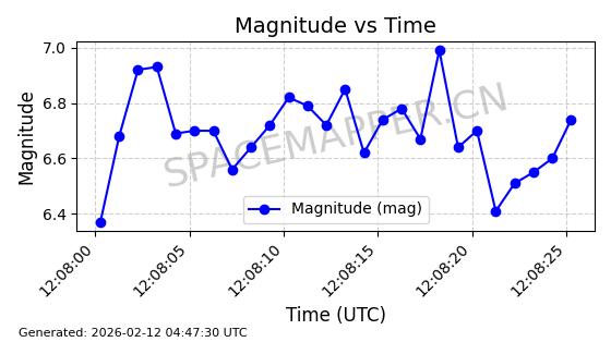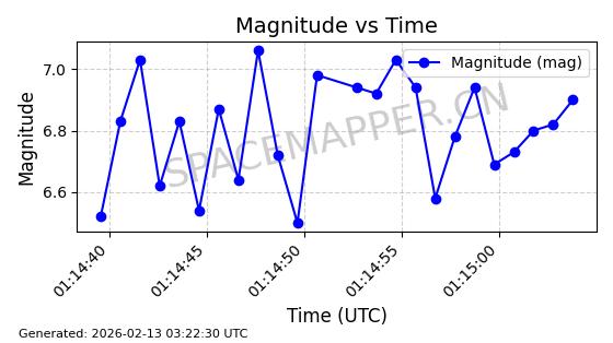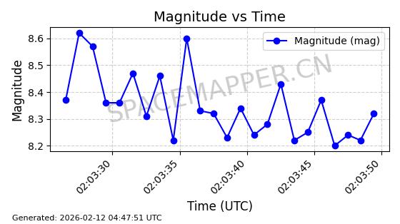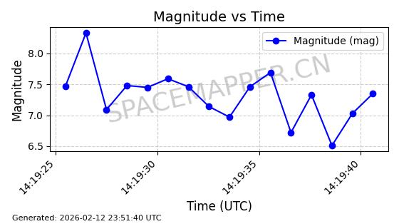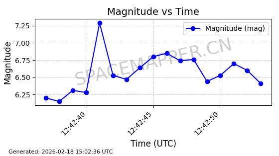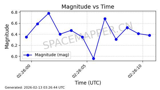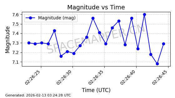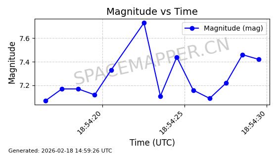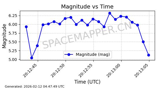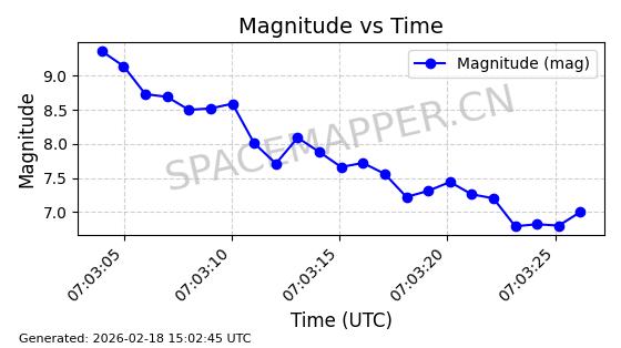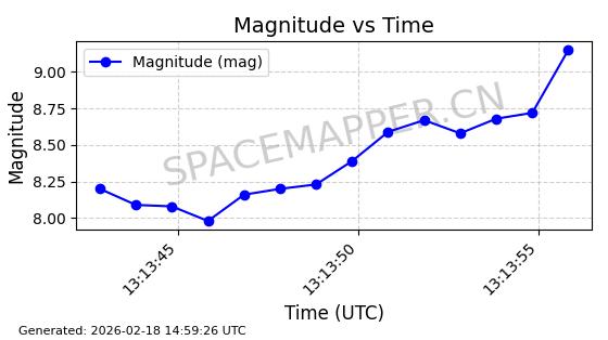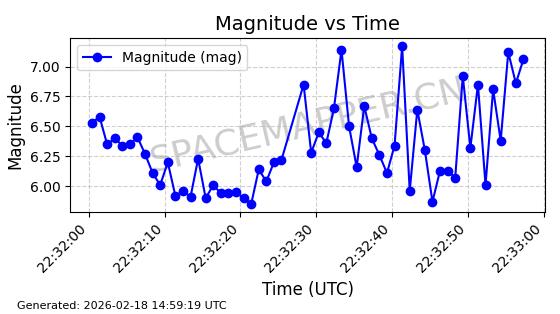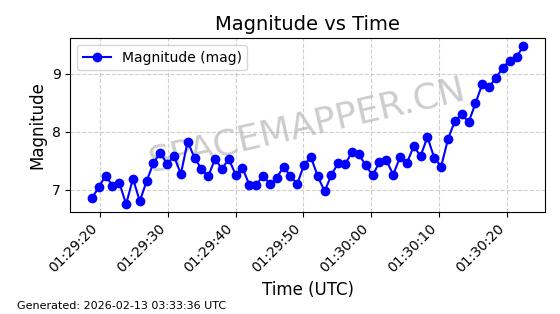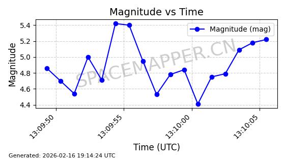 | STARLINK-11094 | 59714 | 59714 | 2024-05-10 同日期轨道 2024-088G 同批次轨道 | 在轨 | 92分钟 | 53.1567 | 359.211 | 360.223 | 0.0000750 | 2026-02-17 01:43:22 | ||