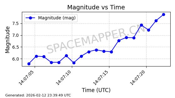 | STARLINK-32088 | 59693 | 59693 | 2024-05-08 同日期轨道 2024-086M 同批次轨道 | 在轨 | 94分钟 | 43.0027 | 482.133 | 484.021 | 0.0001375 | 2026-02-16 15:54:17 | ||