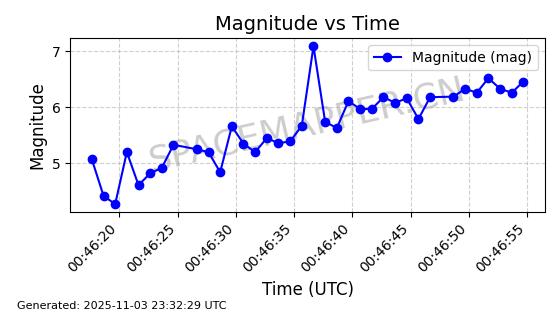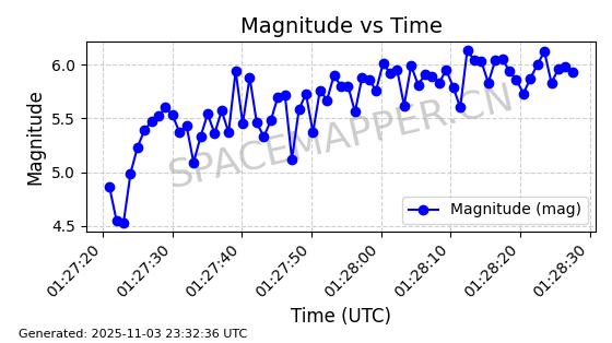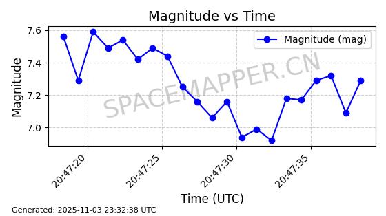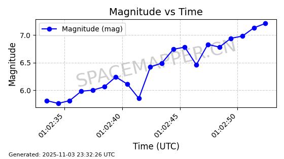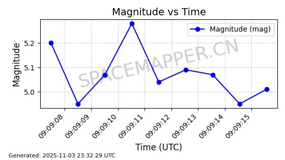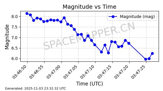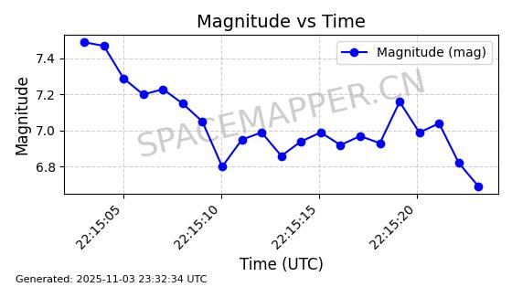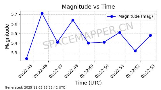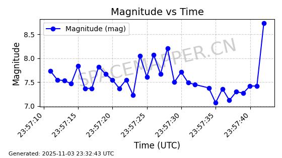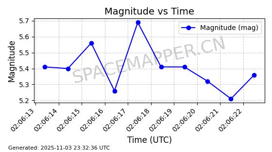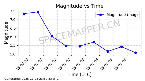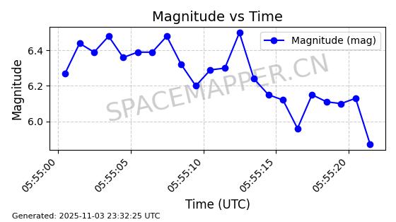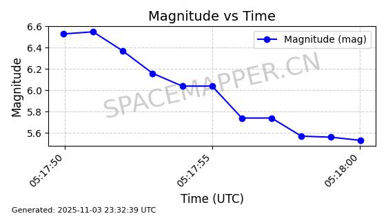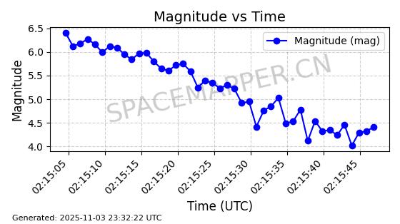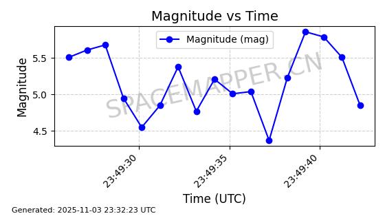 | STARLINK-6214 | 56480 | 56480 | 2023-05-10 同日期轨道 2023-064AJ 同批次轨道 | 在轨 | 95分钟 | 69.9939 | 515.162 | 520.574 | 0.0003923 | 2025-11-02 11:45:10 | ||