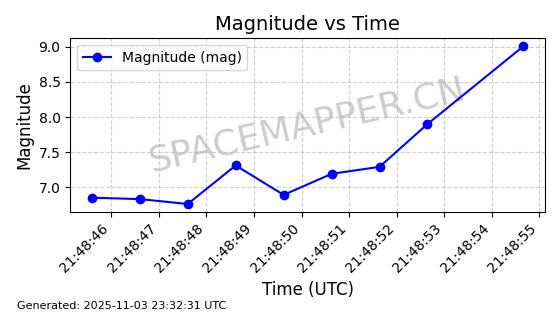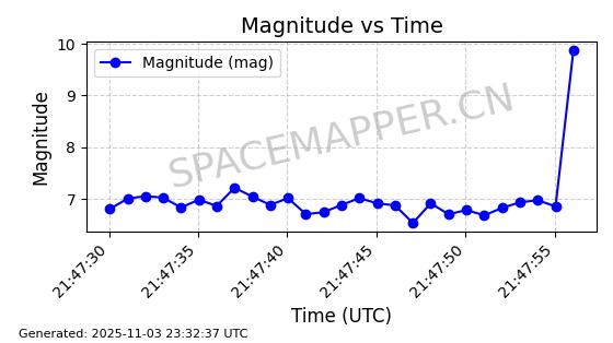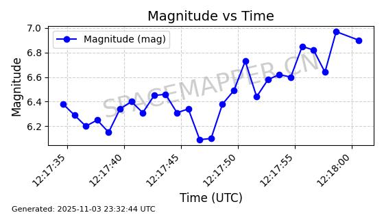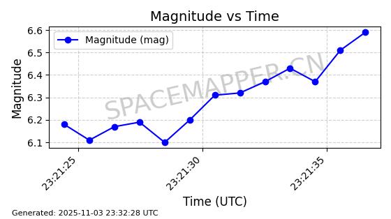 | STARLINK-6210 | 56485 | 56485 | 2023-05-10 同日期轨道 2023-064AP 同批次轨道 | 在轨 | 96分钟 | 69.9989 | 570.322 | 573.792 | 0.0002495 | 2025-11-02 12:16:15 | ||