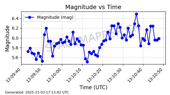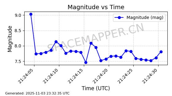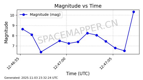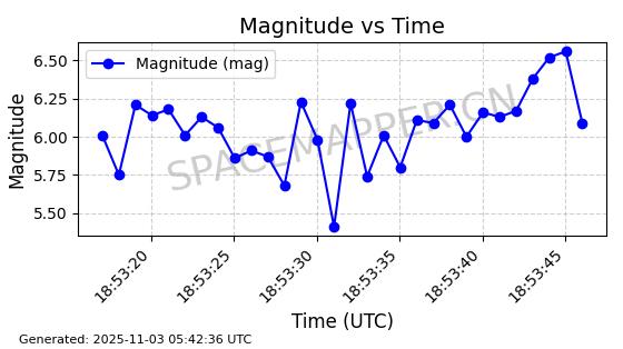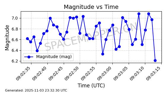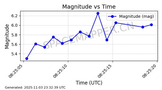 | STARLINK-6265 | 56557 | 56557 | 2023-05-14 同日期轨道 2023-065BG 同批次轨道 | 在轨 | 96分钟 | 43.0039 | 558.349 | 559.863 | 0.0001090 | 2025-11-02 09:36:22 | ||