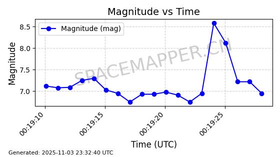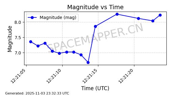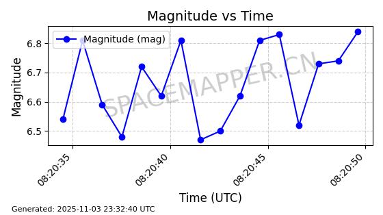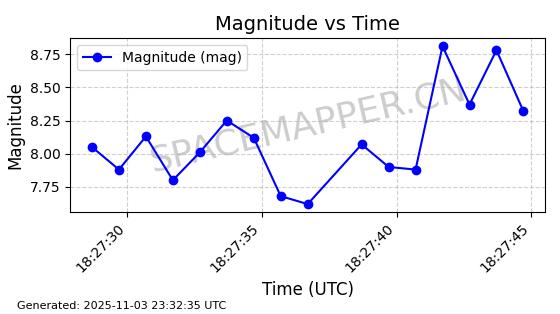| STARLINK-6228 | 56543 | 56543 | 2023-05-14 同日期轨道 2023-065AS 同批次轨道 | 已陨落 | 89分钟 | 42.9960 | 211.628 | 218.668 | 0.0005338 | 2025-05-02 06:20:09 | ||