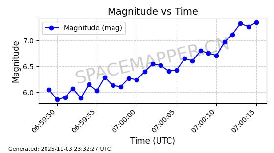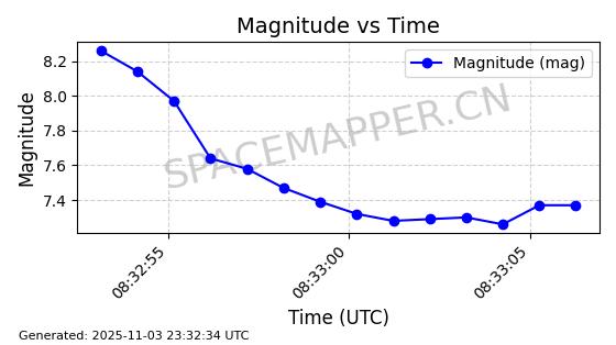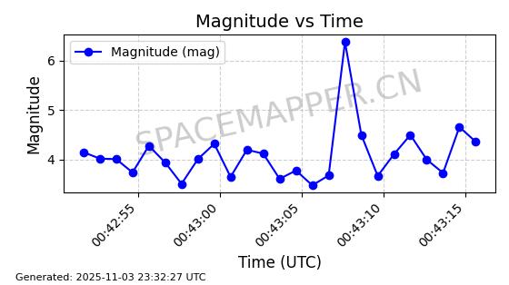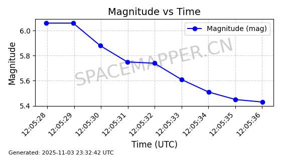 | STARLINK-6238 | 56428 | 56428 | 2023-05-04 同日期轨道 2023-061BG 同批次轨道 | 在轨 | 96分钟 | 43.0046 | 557.87 | 560.34 | 0.0001780 | 2025-11-02 05:43:26 | ||