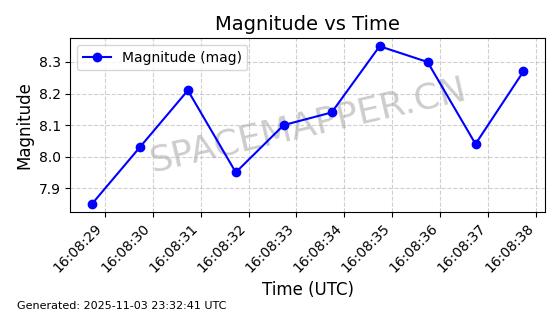 | STARLINK-6176 | 56388 | 56388 | 2023-05-04 同日期轨道 2023-061Q 同批次轨道 | 在轨 | 96分钟 | 43.0024 | 558.408 | 559.764 | 0.0000976 | 2025-11-02 07:37:35 | ||