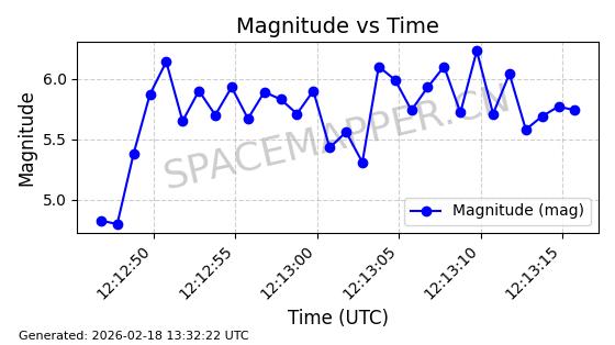 | STARLINK-11124 | 59952 | 59952 | 2024-06-05 同日期轨道 2024-107H 同批次轨道 | 在轨 | 92分钟 | 53.1592 | 359.013 | 360.535 | 0.0001128 | 2026-02-17 01:09:54 | ||