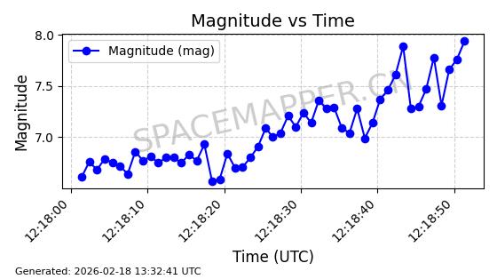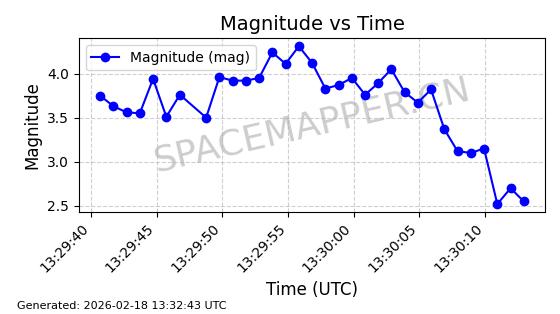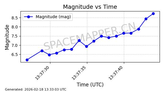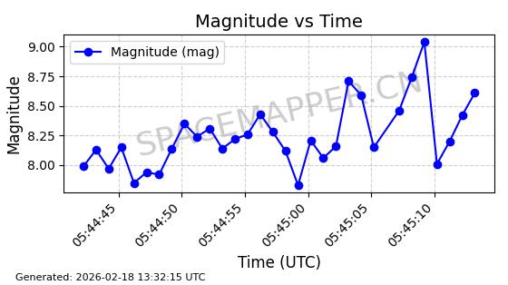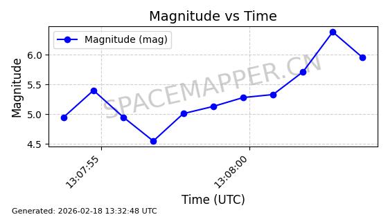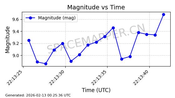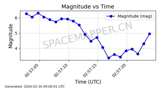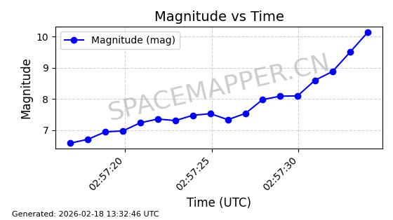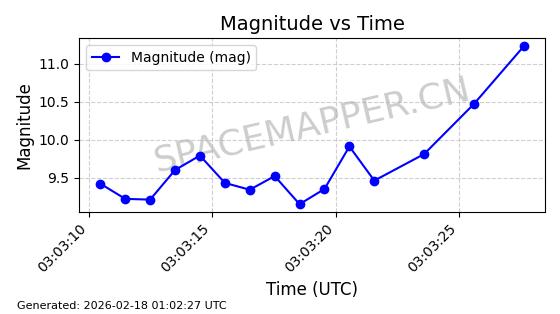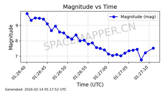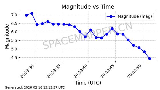 | STARLINK-11130 | 59950 | 59950 | 2024-06-05 同日期轨道 2024-107F 同批次轨道 | 在轨 | 92分钟 | 53.1579 | 358.883 | 360.515 | 0.0001211 | 2026-02-17 01:24:00 | ||