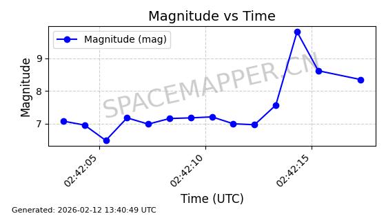 | STARLINK-11149 | 60041 | 60041 | 2024-06-08 同日期轨道 2024-112D 同批次轨道 | 在轨 | 92分钟 | 53.1590 | 359.109 | 360.415 | 0.0000968 | 2026-02-17 03:43:19 | ||