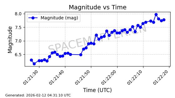 | STARLINK-31967 | 60021 | 60021 | 2024-06-08 同日期轨道 2024-111F 同批次轨道 | 在轨 | 94分钟 | 53.1592 | 474.412 | 475.994 | 0.0001154 | 2026-02-16 19:53:38 | ||