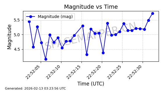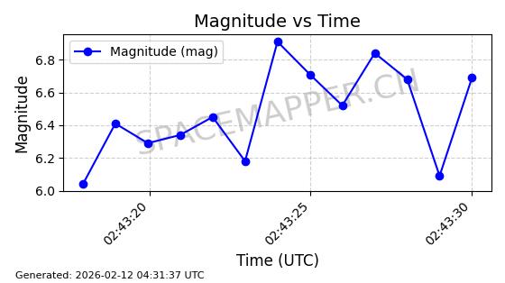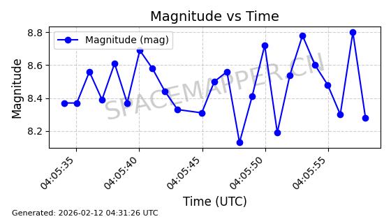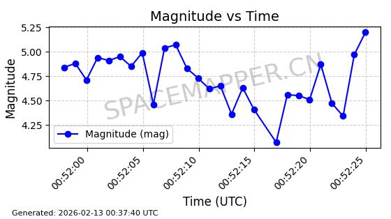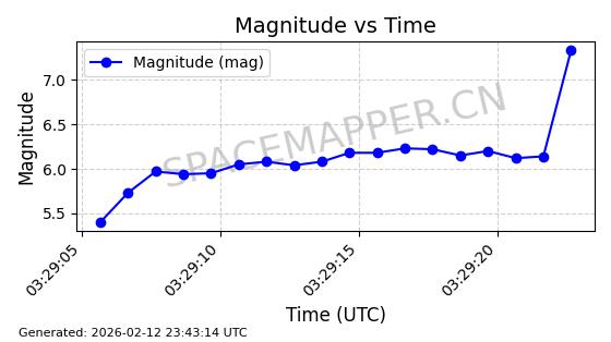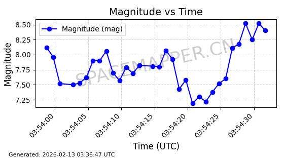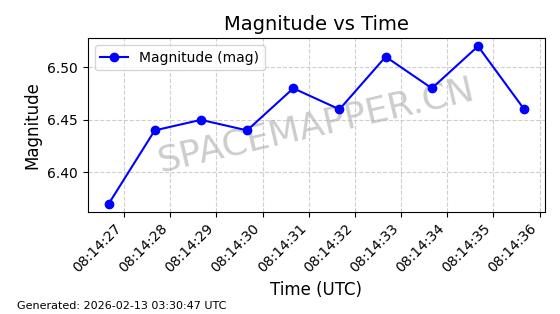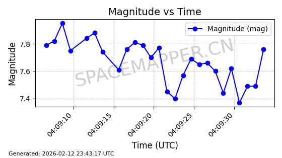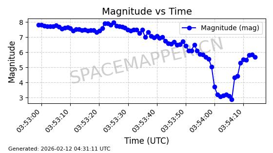 | STARLINK-11086 | 60043 | 60043 | 2024-06-08 同日期轨道 2024-112F 同批次轨道 | 在轨 | 92分钟 | 53.1596 | 359.1 | 360.474 | 0.0001019 | 2026-02-17 03:29:11 | ||