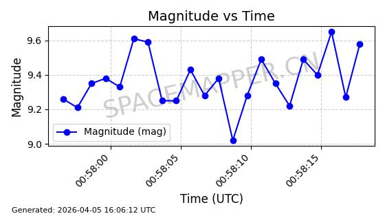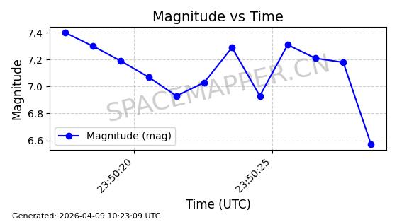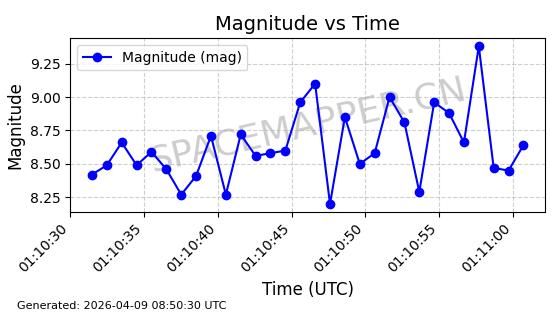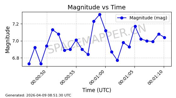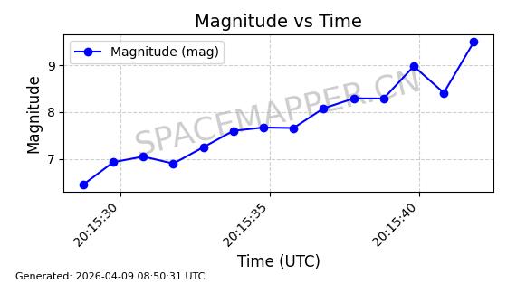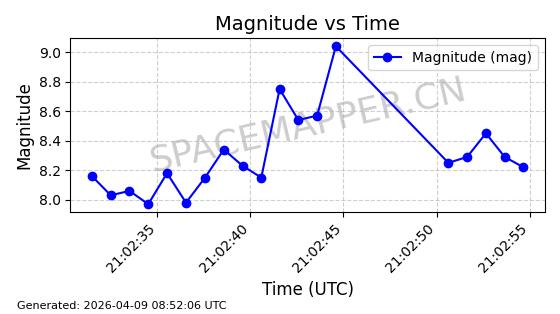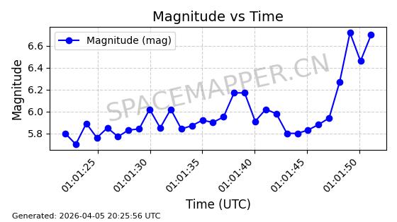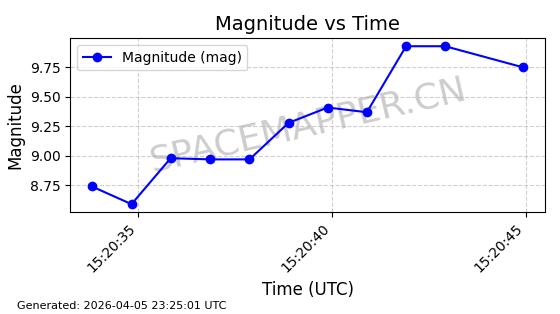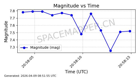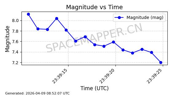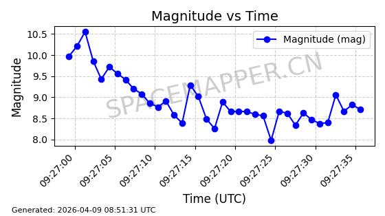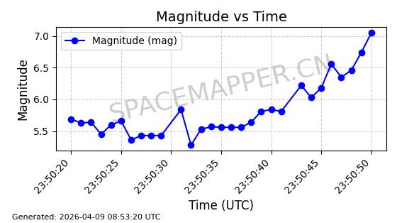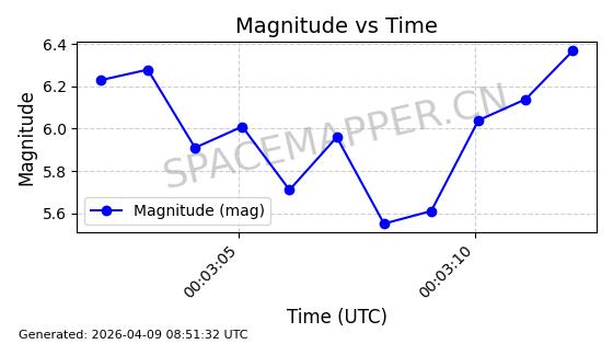 | STARLINK-6325 | 56789 | 56789 | 2023-05-31 同日期轨道 2023-078Y 同批次轨道 | 已陨落 | 88分钟 | 69.9883 | 147.542 | 159.758 | 0.0009351 | 2025-09-16 19:00:34 | ||