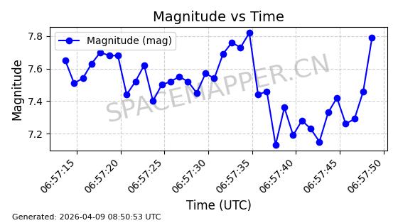 | STARLINK-6373 | 57345 | 57345 | 2023-07-16 同日期轨道 2023-099T 同批次轨道 | 在轨 | 95分钟 | 43.0025 | 532.103 | 533.781 | 0.0001213 | 2026-04-08 06:13:39 | ||