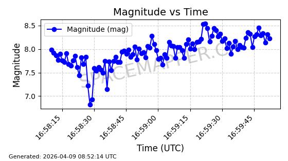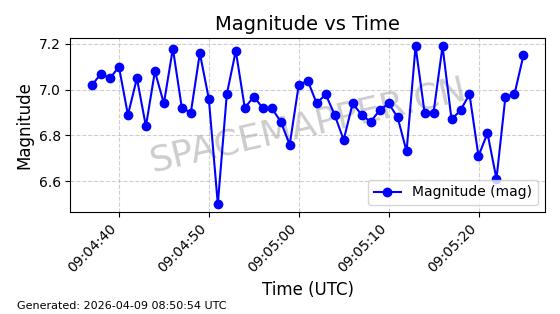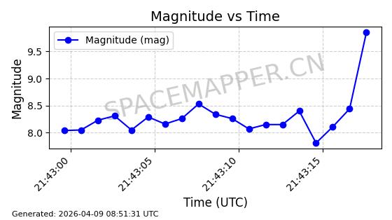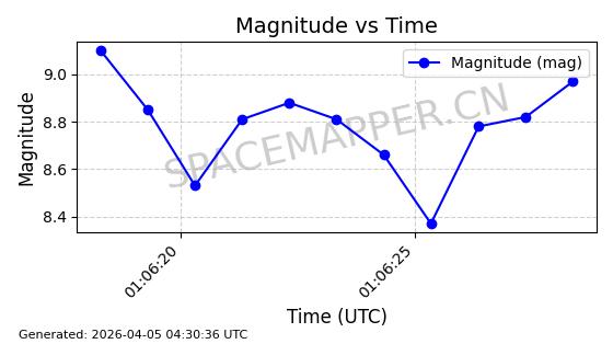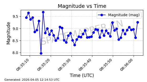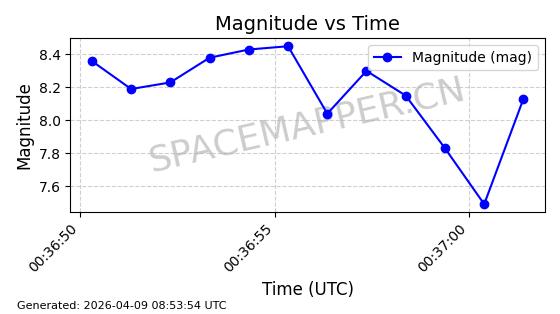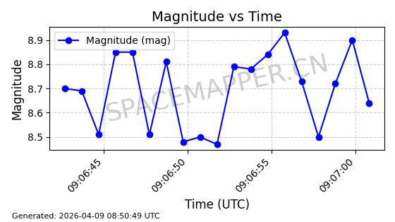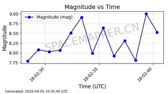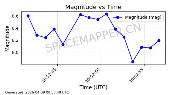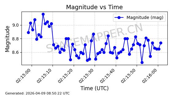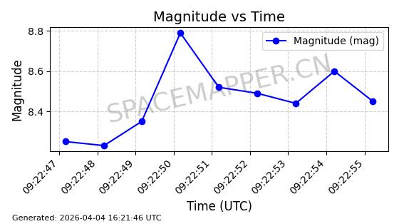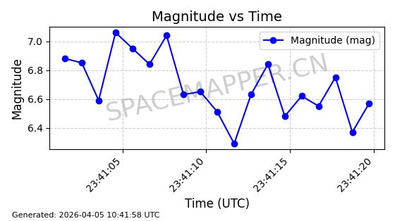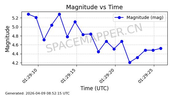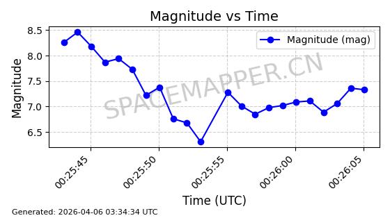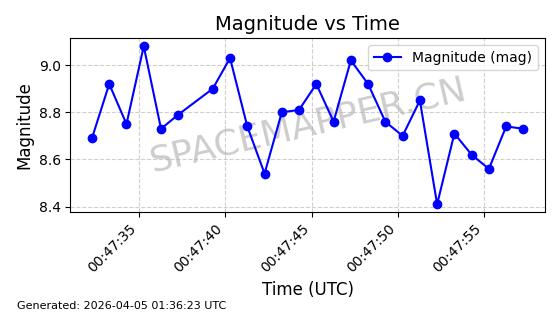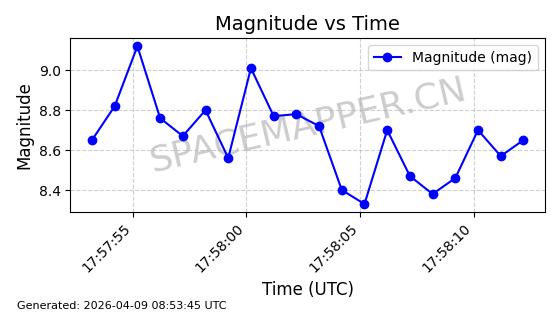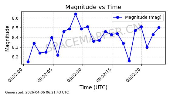 | STARLINK-6322 | 57337 | 57337 | 2023-07-16 同日期轨道 2023-099K 同批次轨道 | 在轨 | 94分钟 | 43.0044 | 484.445 | 486.661 | 0.0001613 | 2026-04-08 00:45:34 | ||