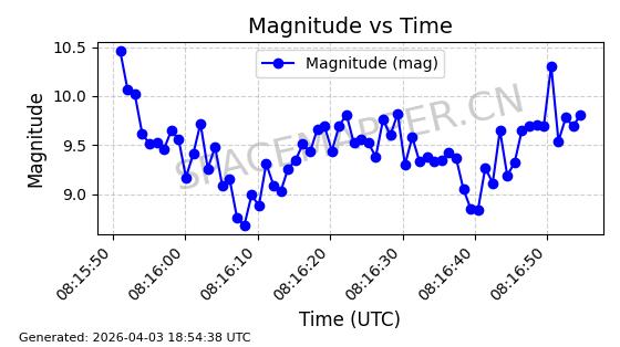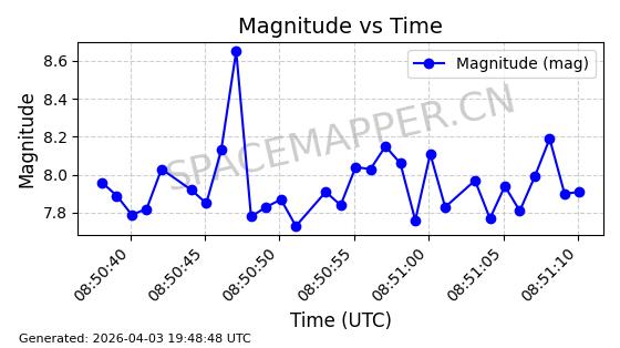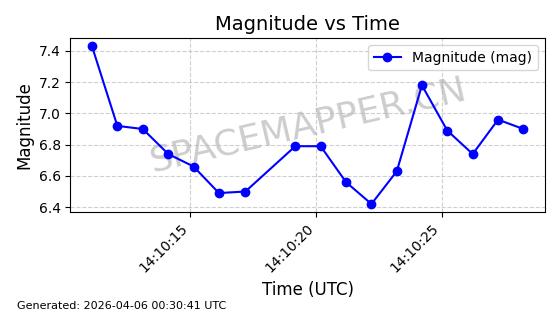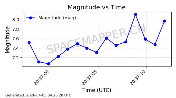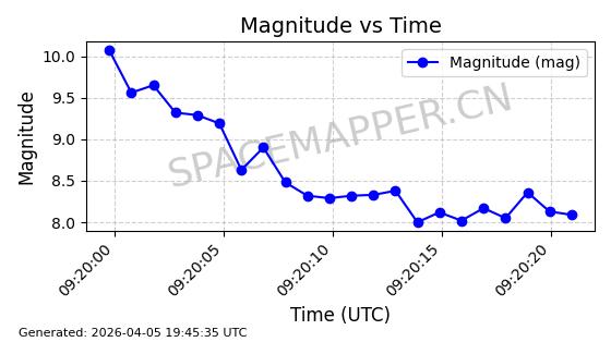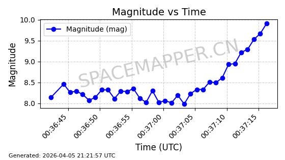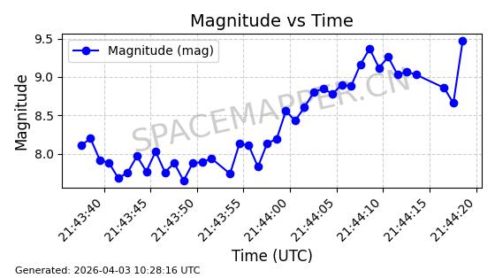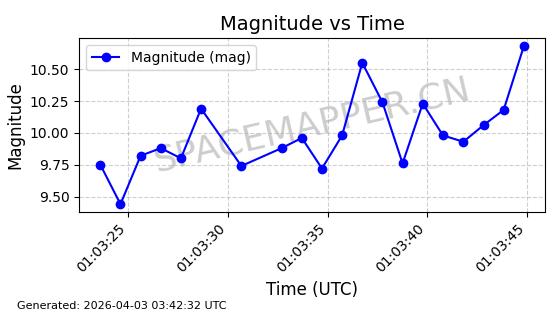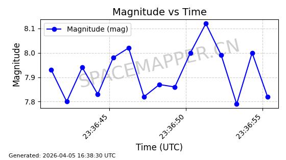 | 卫星名称 | AOE ID | NORAD ID | 发射日期 国际编号 | 在轨状态 | 轨道周期 | 轨道倾角 (度) | 近地点 (Km) | 远地点 (Km) | 偏心率 | 更新时间 (UTC) | 近期光变曲线 | 服务 |