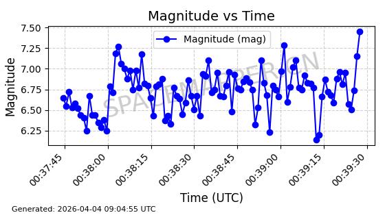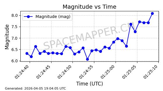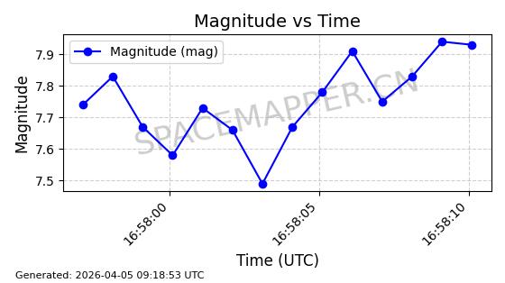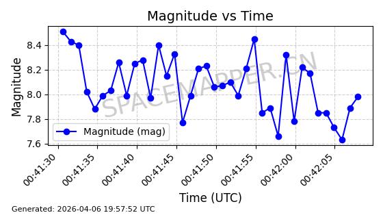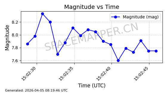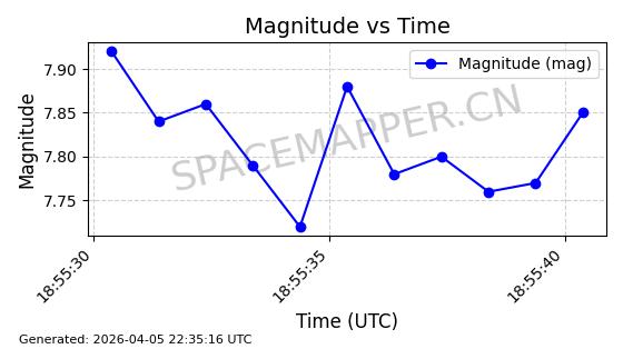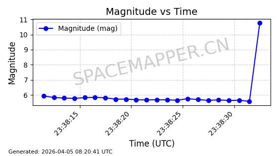 | STARLINK-6346 | 57243 | 57243 | 2023-07-07 同日期轨道 2023-094AB 同批次轨道 | 在轨 | 94分钟 | 42.9998 | 484.633 | 486.629 | 0.0001454 | 2026-04-08 06:00:01 | ||