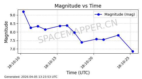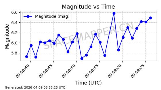 | STARLINK-6309 | 56535 | 56535 | 2023-05-14 同日期轨道 2023-065AJ 同批次轨道 | 在轨 | 94分钟 | 43.0046 | 484.494 | 486.596 | 0.0001530 | 2026-04-08 05:06:26 | ||