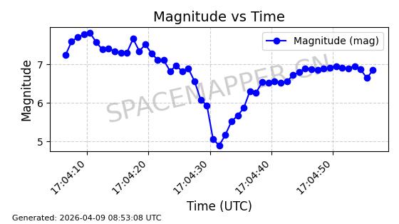 | STARLINK-6278 | 56412 | 56412 | 2023-05-04 同日期轨道 2023-061AQ 同批次轨道 | 在轨 | 94分钟 | 43.0020 | 485.033 | 486.053 | 0.0000742 | 2026-04-08 04:58:18 | ||
