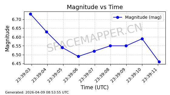 | STARLINK-6339 | 56771 | 56771 | 2023-05-31 同日期轨道 2023-078E 同批次轨道 | 已陨落 | 87分钟 | 69.9755 | 140.324 | 150.436 | 0.0007749 | 2025-03-09 16:46:28 | ![]() | |