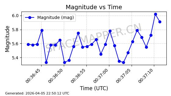 | STARLINK-6326 | 56787 | 56787 | 2023-05-31 同日期轨道 2023-078W 同批次轨道 | 在轨 | 96分钟 | 69.9995 | 570.479 | 573.621 | 0.0002260 | 2026-04-07 20:22:14 | ||