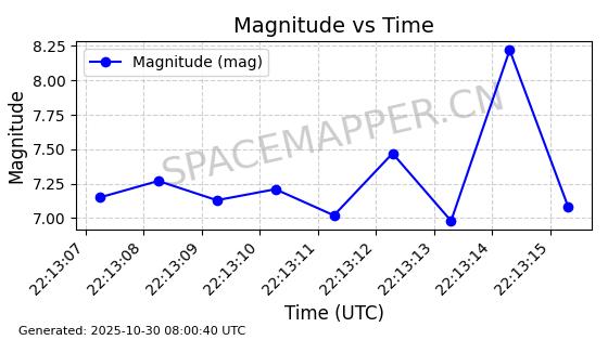 | STARLINK-1568 | 46080 | 46080 | 2020-08-07 同日期轨道 2020-055BF 同批次轨道 | 在轨 | 94分钟 | 53.0661 | 462.359 | 468.847 | 0.0004739 | 2025-10-28 06:27:24 | ||