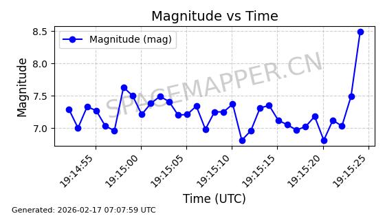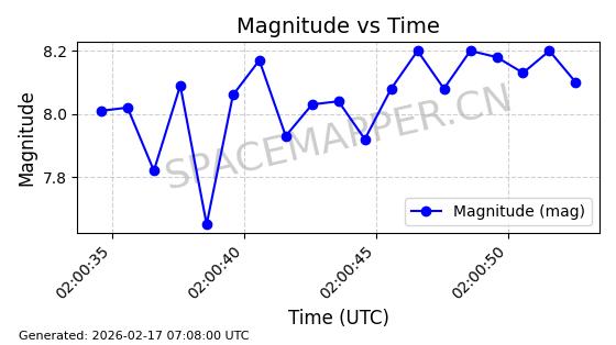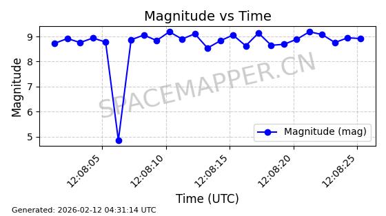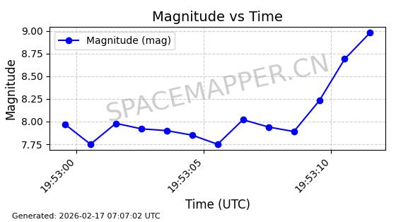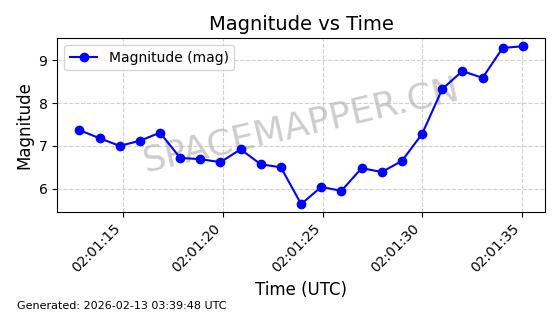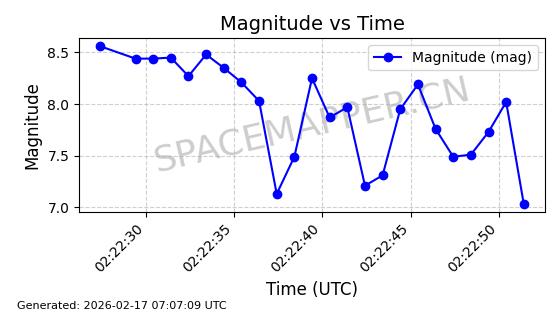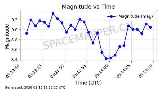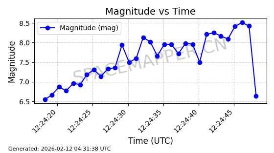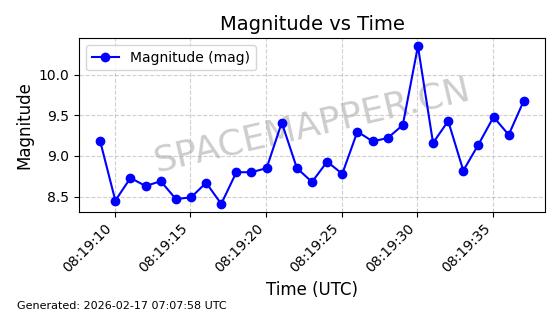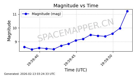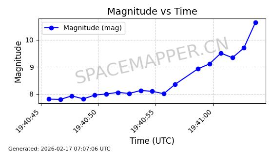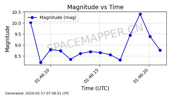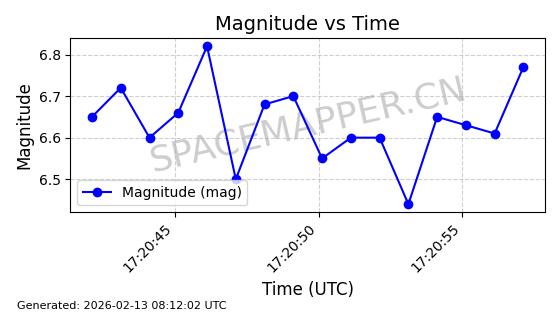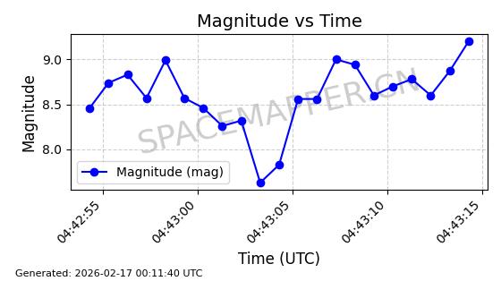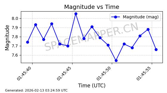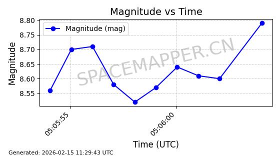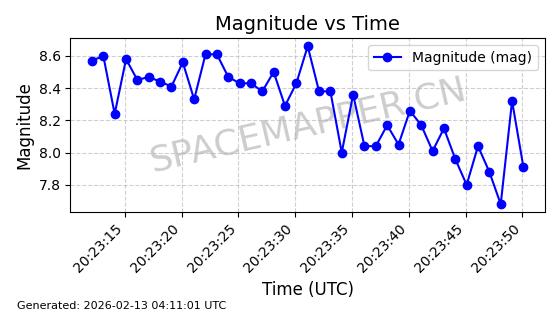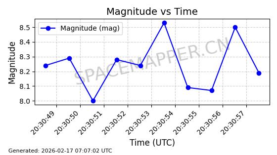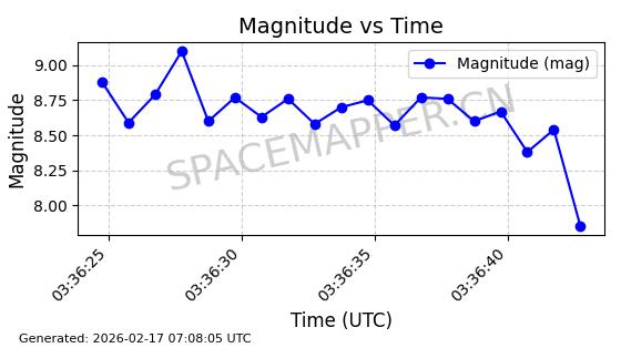 | STARLINK-1605 | 46123 | 46123 | 2020-08-18 同日期轨道 2020-057G 同批次轨道 | 已陨落 | 87分钟 | 53.0212 | 146.478 | 151.744 | 0.0004033 | 2026-02-11 18:51:08 | ||