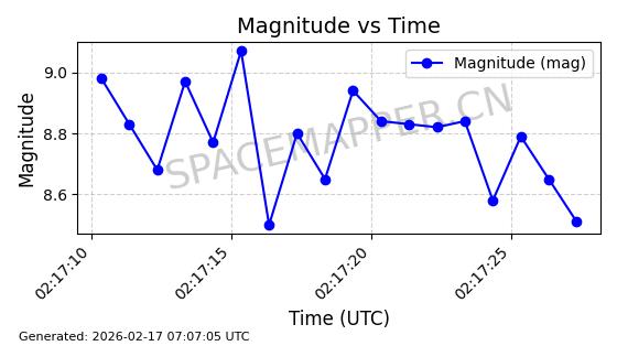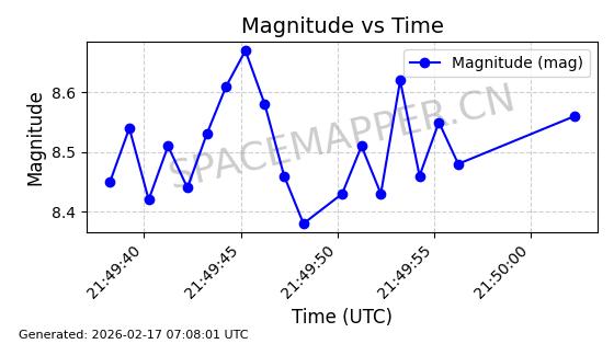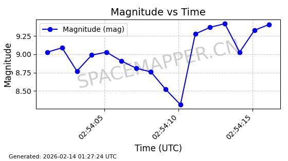 | STARLINK-1622 | 46128 | 46128 | 2020-08-18 同日期轨道 2020-057M 同批次轨道 | 在轨 | 92分钟 | 53.0272 | 386.039 | 400.431 | 0.0010627 | 2026-02-16 01:20:58 | ||