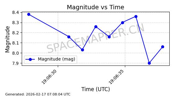 | STARLINK-1610 | 46163 | 46163 | 2020-08-18 同日期轨道 2020-057AY 同批次轨道 | 已陨落 | 88分钟 | 53.0127 | 147.237 | 155.837 | 0.0006584 | 2025-05-08 06:20:03 | ||
