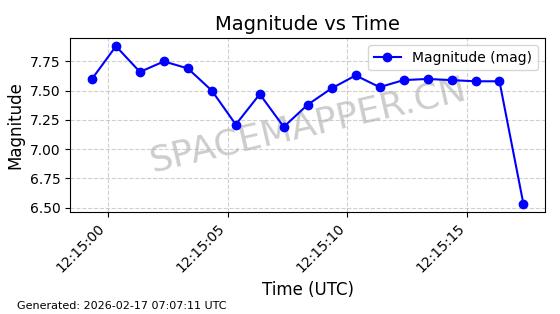 | STARLINK-1618 | 46125 | 46125 | 2020-08-18 同日期轨道 2020-057J 同批次轨道 | 已陨落 | 88分钟 | 53.0242 | 169.844 | 176.624 | 0.0005174 | 2025-09-17 01:11:04 | ||