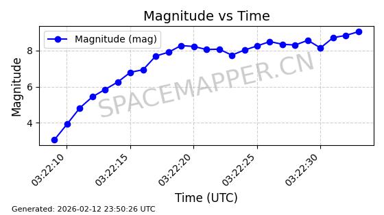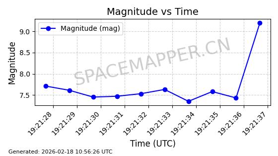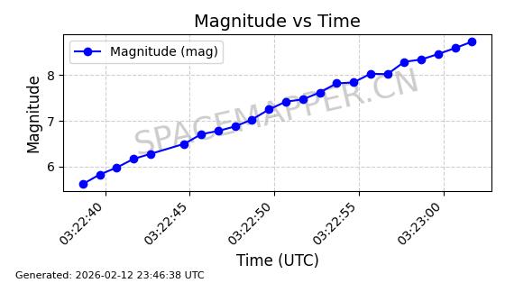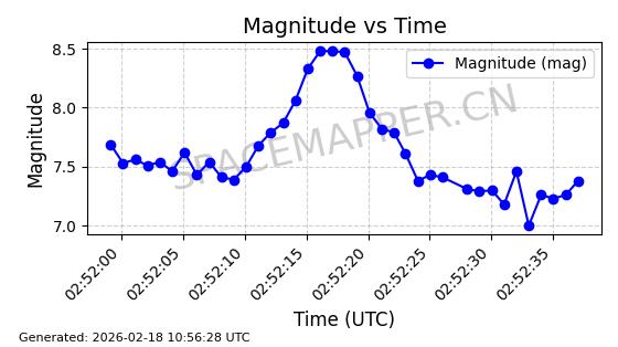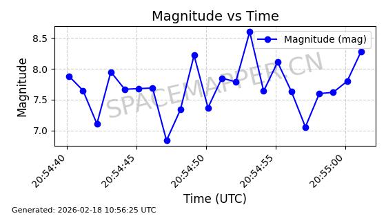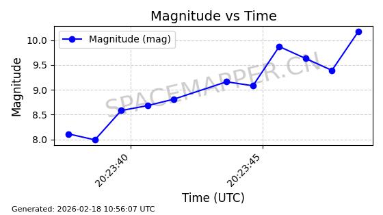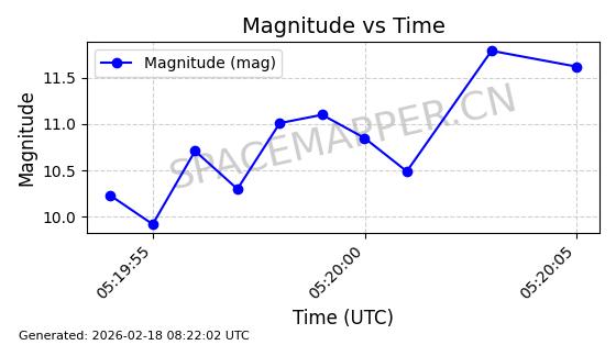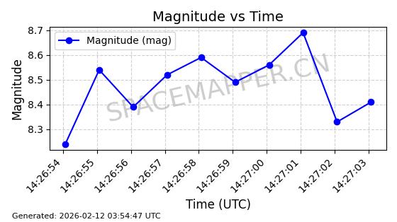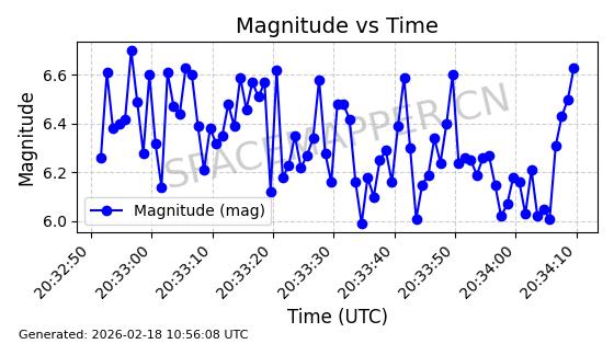 | STARLINK-32282 | 61006 | 61006 | 2024-09-05 同日期轨道 2024-158S 同批次轨道 | 在轨 | 94分钟 | 53.1591 | 474.481 | 476.013 | 0.0001117 | 2026-02-16 19:05:14 | ||