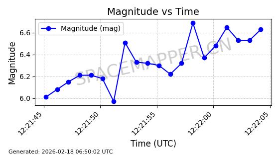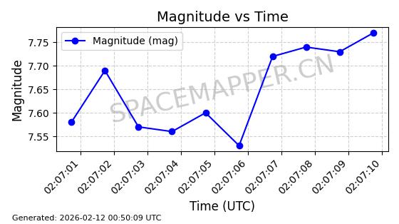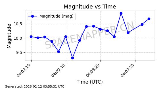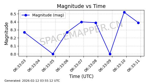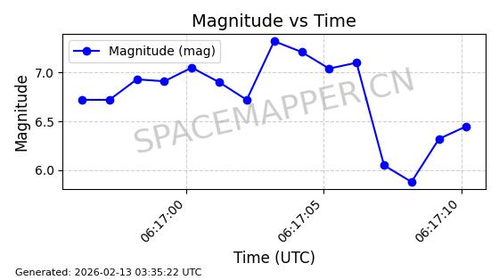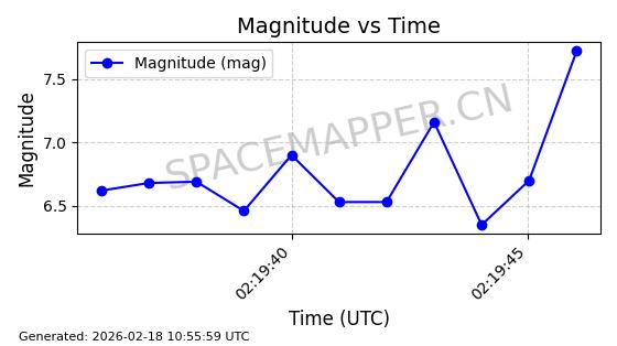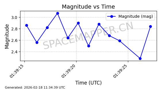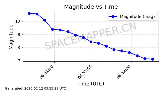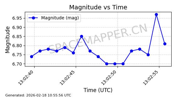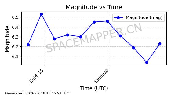 | STARLINK-11290 | 61000 | 61000 | 2024-09-05 同日期轨道 2024-158L 同批次轨道 | 在轨 | 92分钟 | 53.1597 | 358.006 | 361.542 | 0.0002623 | 2026-02-17 04:23:50 | ||