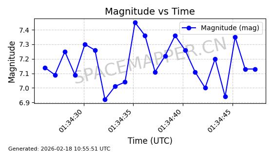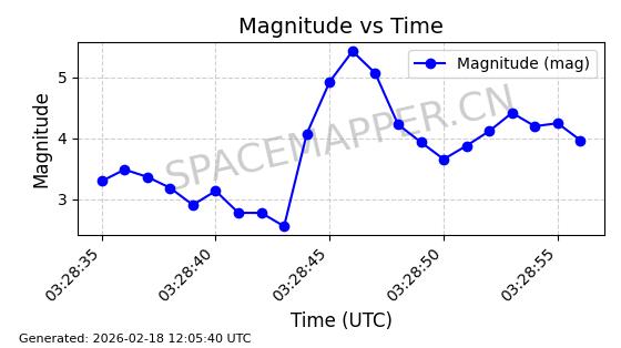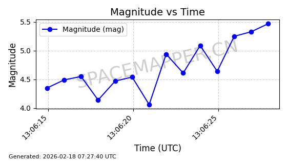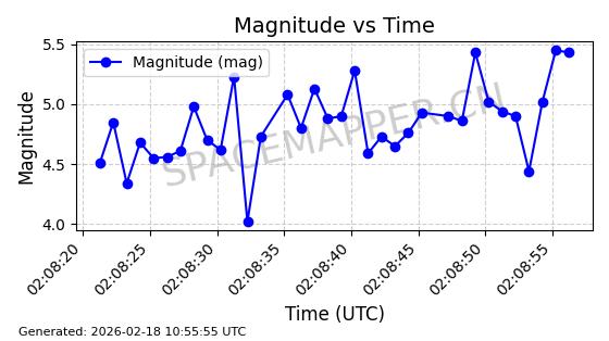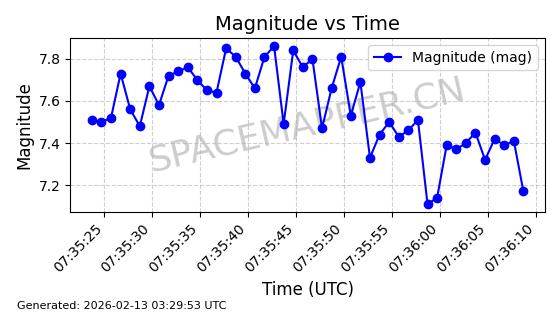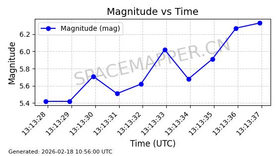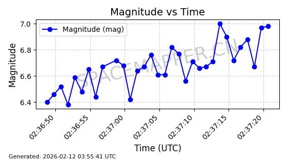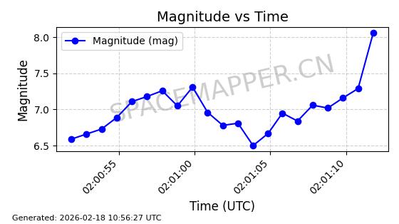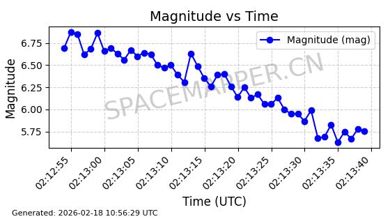 | STARLINK-32369 | 60917 | 60917 | 2024-08-31 同日期轨道 2024-154Q 同批次轨道 | 在轨 | 94分钟 | 53.1626 | 474.318 | 476.186 | 0.0001362 | 2026-02-17 03:41:06 | ||