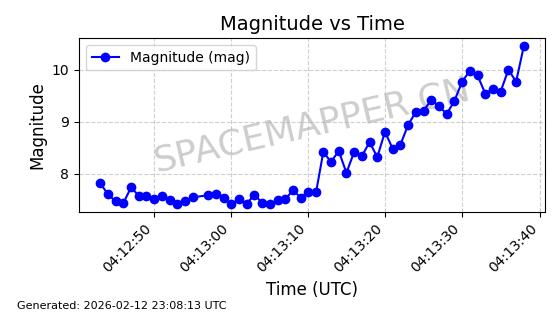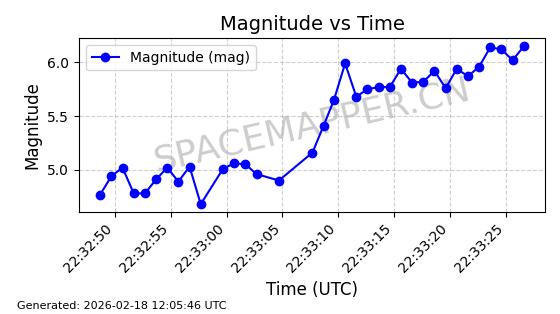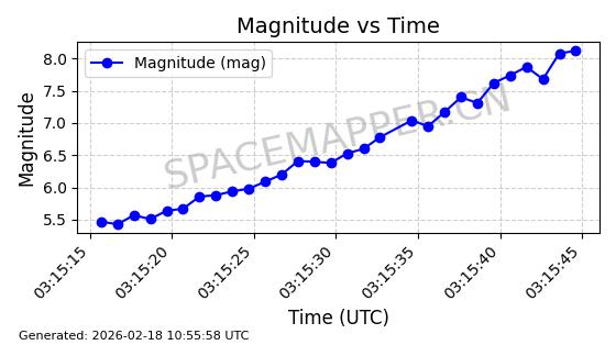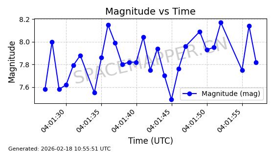 | STARLINK-32262 | 60938 | 60938 | 2024-08-31 同日期轨道 2024-155Q 同批次轨道 | 在轨 | 93分钟 | 53.1530 | 422.296 | 431.756 | 0.0006950 | 2026-02-17 04:00:01 | ||
