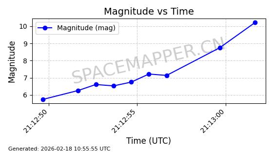 | STARLINK-32288 | 60943 | 60943 | 2024-08-31 同日期轨道 2024-155V 同批次轨道 | 在轨 | 94分钟 | 53.1595 | 474.42 | 476.07 | 0.0001203 | 2026-02-16 18:19:17 | ||