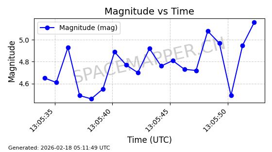 | STARLINK-11277 | 61205 | 61205 | 2024-09-20 同日期轨道 2024-171F 同批次轨道 | 在轨 | 92分钟 | 53.1586 | 359.14 | 360.258 | 0.0000829 | 2026-02-17 00:22:14 | ||