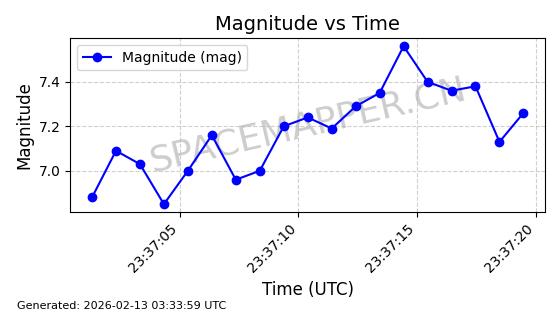 | STARLINK-11209 | 61200 | 61200 | 2024-09-20 同日期轨道 2024-171A 同批次轨道 | 在轨 | 92分钟 | 53.1583 | 359.046 | 360.534 | 0.0001103 | 2026-02-17 01:04:39 | ||