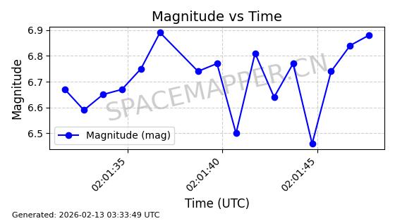| STARLINK-11279 | 61206 | 61206 | 2024-09-20 同日期轨道 2024-171G 同批次轨道 | 在轨 | 92分钟 | 53.1588 | 358.839 | 360.609 | 0.0001312 | 2026-02-17 00:15:10 | ||